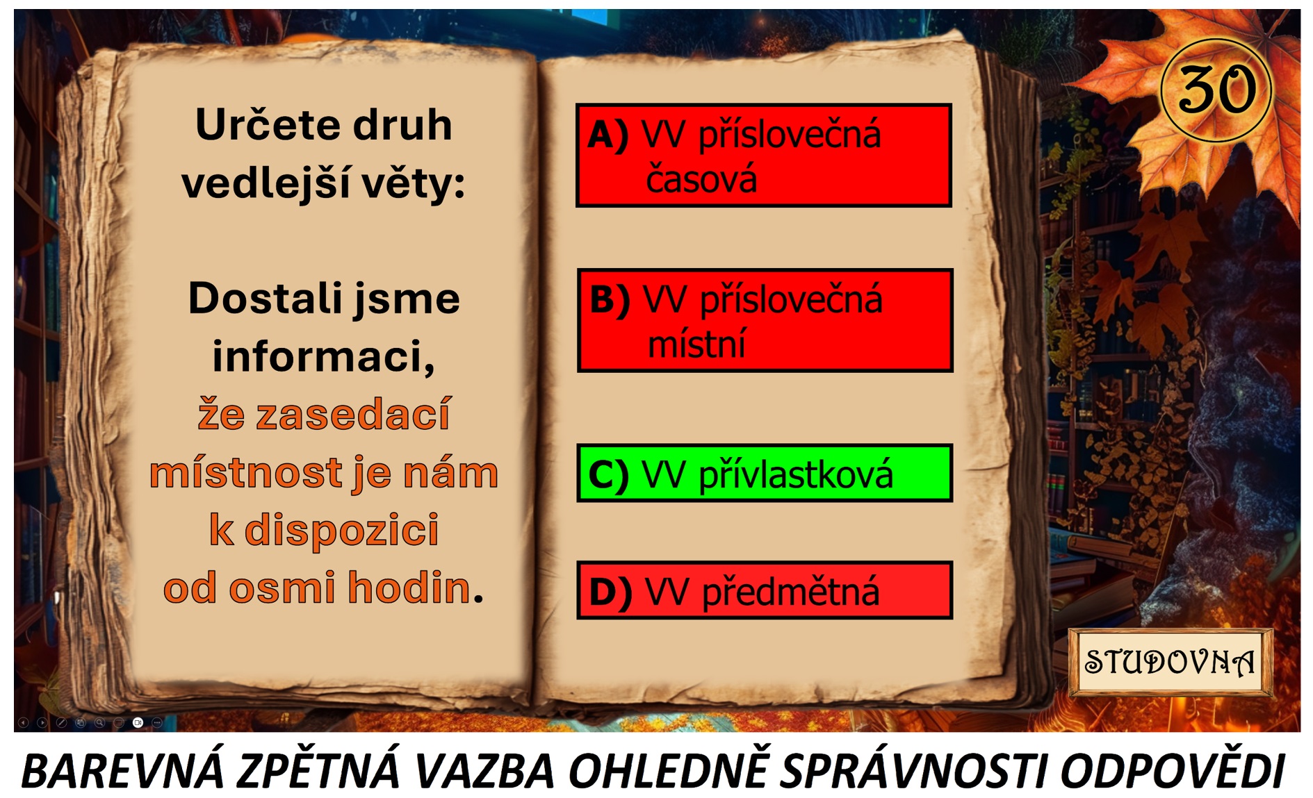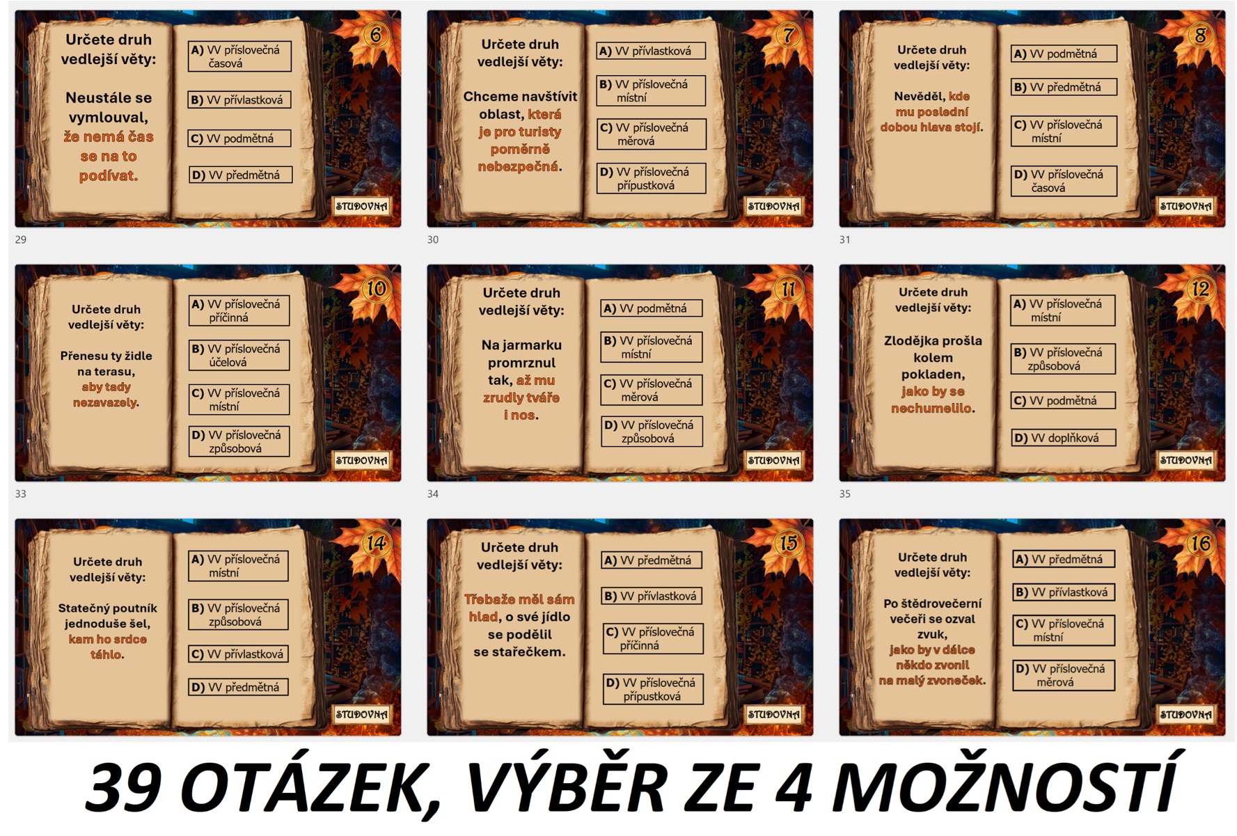 Komplexní opakování druhů vedlejších vět; hravá forma + halloweenské motivy