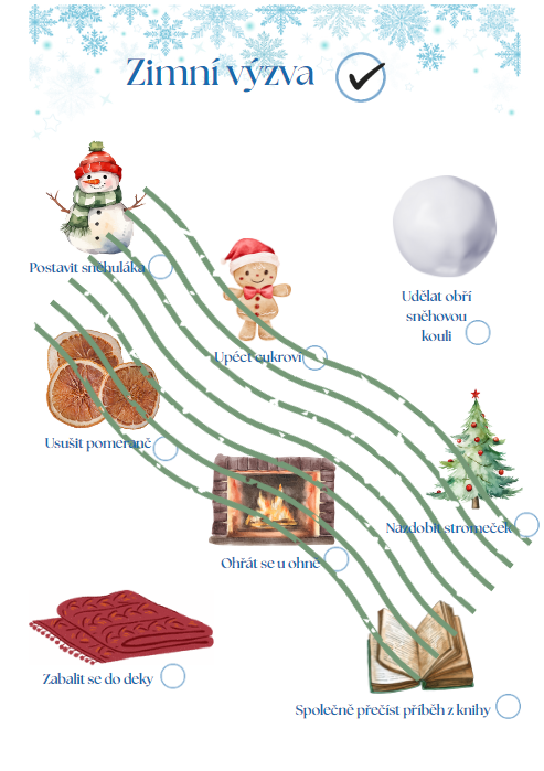 ❄️ Zimní výzvy: stavění sněhuláka, pečení cukroví, zdobení stromečku…