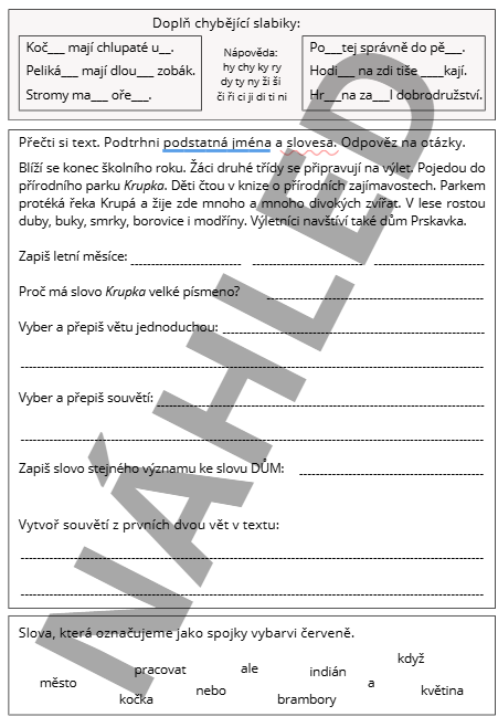 stáhněte si soubor, který shrnuje učivo českého jazyka ve 2. ročníku ZŠ.