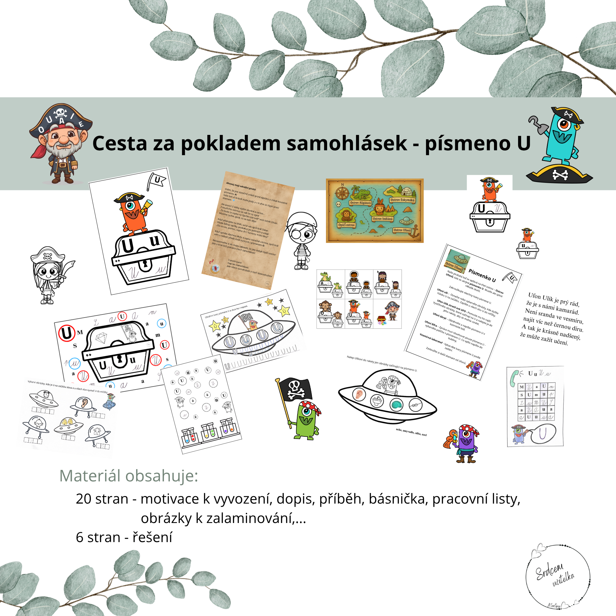 Pracovní listy, skupinové práce, obrázky k vytištění na tabuli, pomůcka na lavici pro děti, dopis, příběh a básnička, nápad na vyvození písmene. Vše k písmenu U.