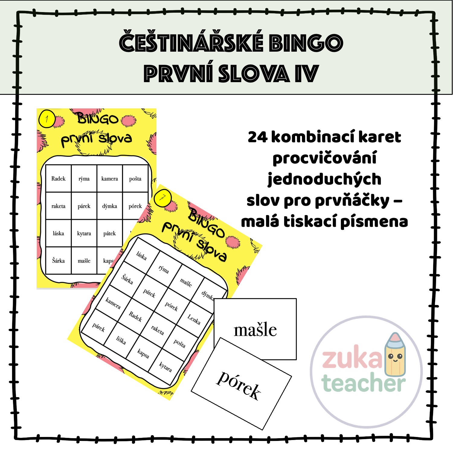 Materiál obsahuje 24 možných kombinací na kartách bingo.