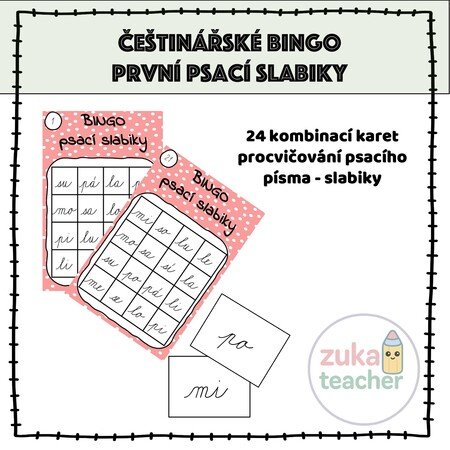 Hra BINGO (slabiky – psací písmo) pro prvňáčky.