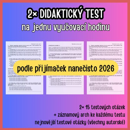 - Pokud spojíte oba testy dohromady, vznikne – z hlediska skladby otázek a rozložení okruhů – kompletní didaktický test. Pouze objem textů je menší oproti reálnému didaktickému testu.