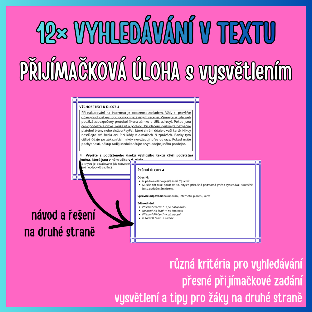 Cílová skupina: Materiál je primárně určen žákům druhého stupně ZŠ, kteří se připravují k přijímacím zkouškám na střední školy.