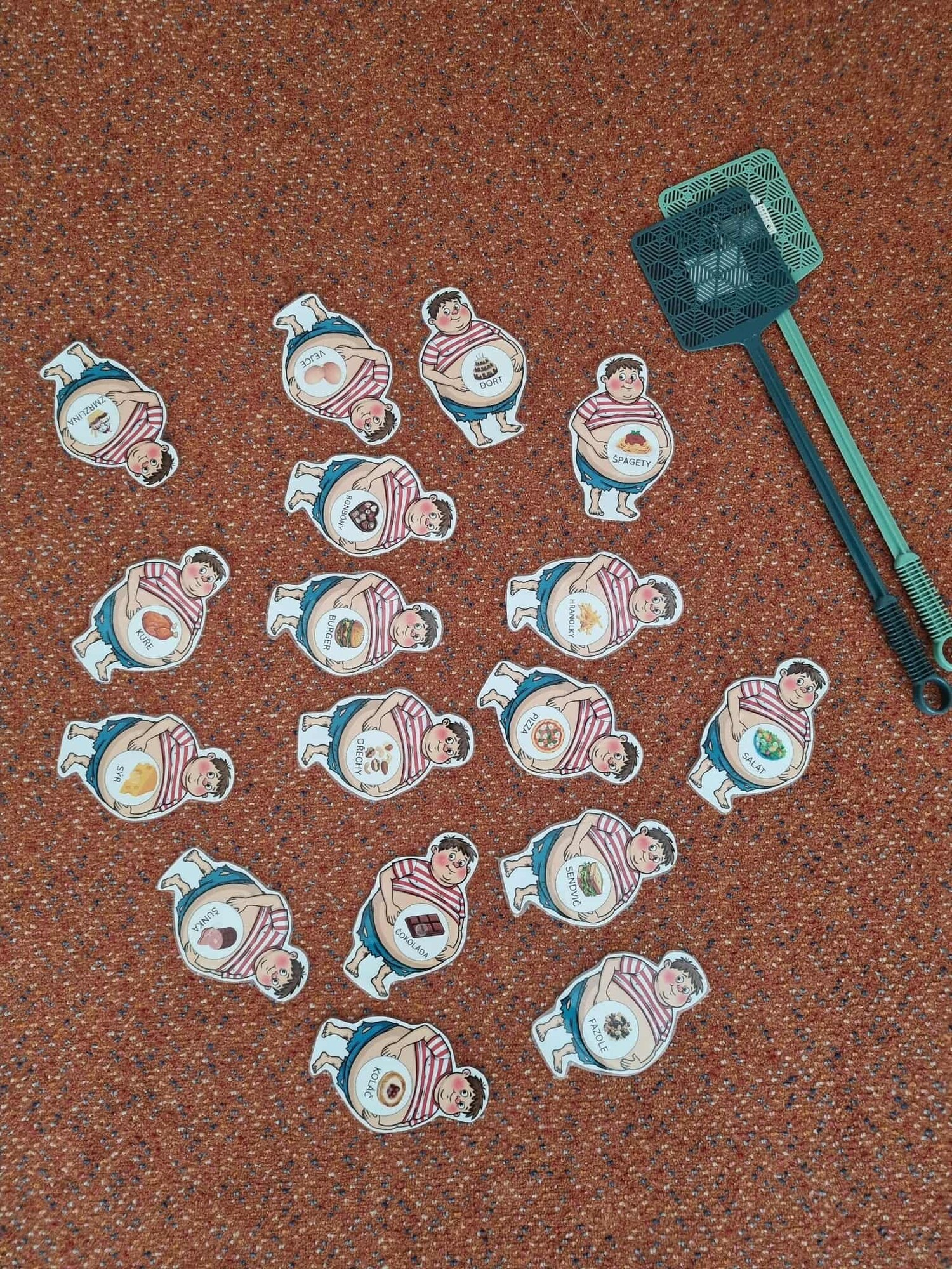 Procvičení pozornosti a rychlosti reakcí: Soubor se dá využít jako oblíbená hra „plácni si“ – stačí obyčejné plácačky na mouchy a máte o zábavu postaráno! Děti musí být ve střehu, rychle zareagovat a najít správný obrázek jídla. Tato aktivita je skvělá pro trénování postřehu, koncentrace i zdravého soutěžení.