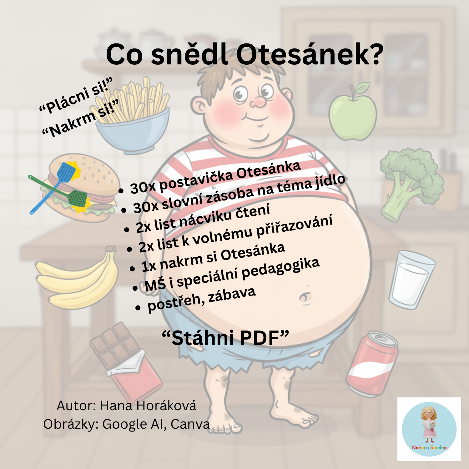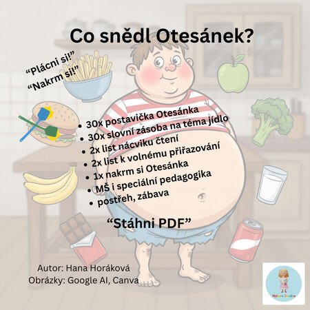 představte si soubor, který rozzáří oči dětem, zapojí celou třídu do společné hry a vám dá do ruky výukový materiál plný nápadů, kreativity a radosti. Přesně takový je „Co snědl Otesánek?“ – zábavný, pestrý a zároveň velmi praktický soubor aktivit, který jsem vytvořila s myšlenkou na rozvoj dětské slovní zásoby, pozornosti i počátečního čtení.