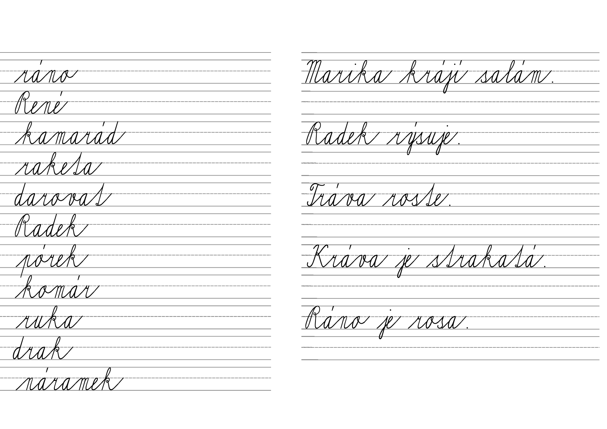 - 2 pracovní listy k psaní písmene R, r slov i vět