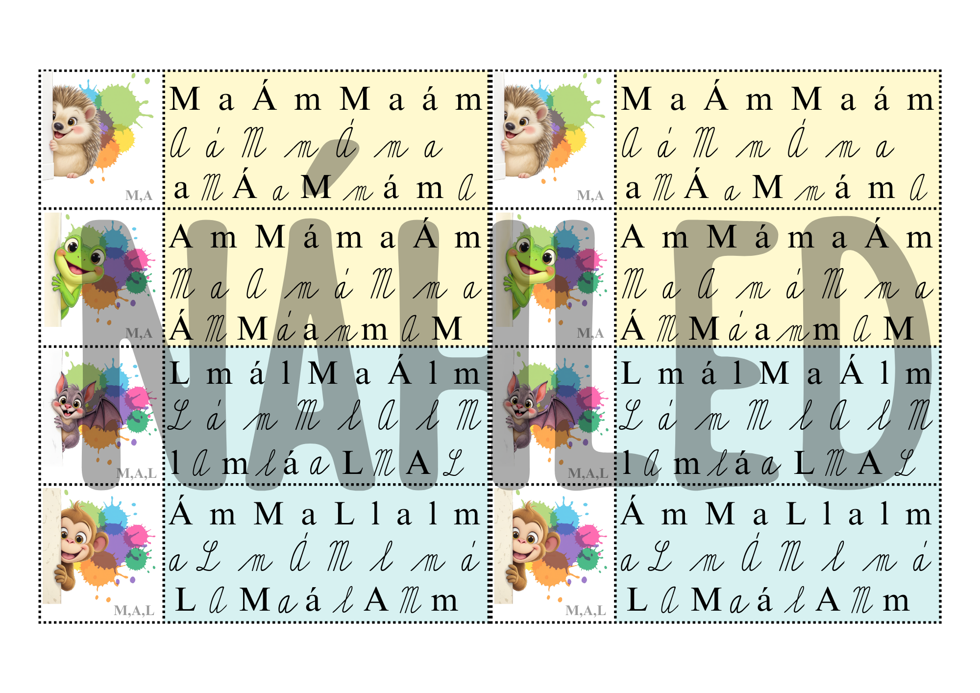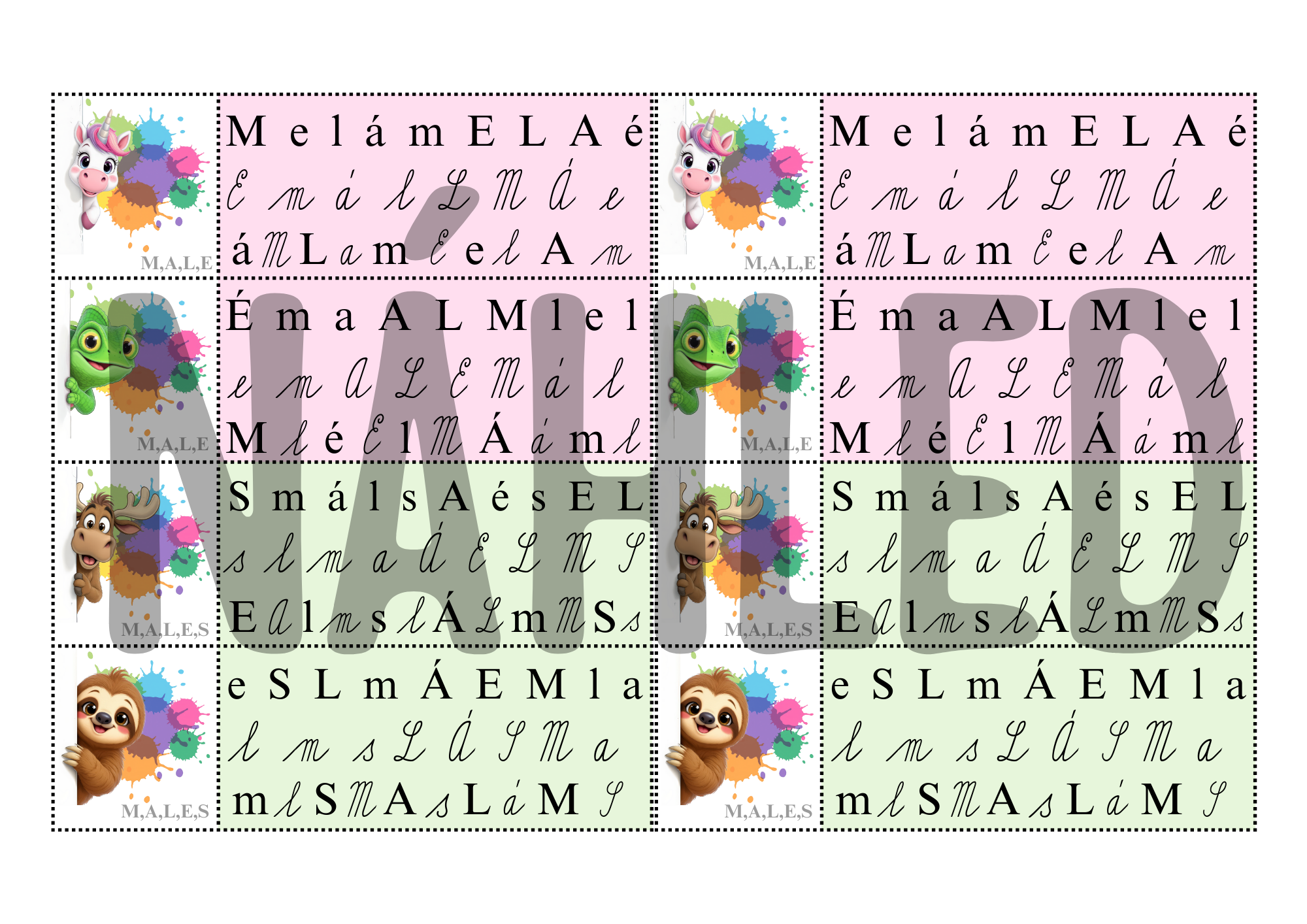 - Vytiskněte pomůcku a zalaminujte. Pomůcku můžete rozstříhat buď na jednotlivé karty nebo vždy nechat dvě se stejnými písmeny u sebe.