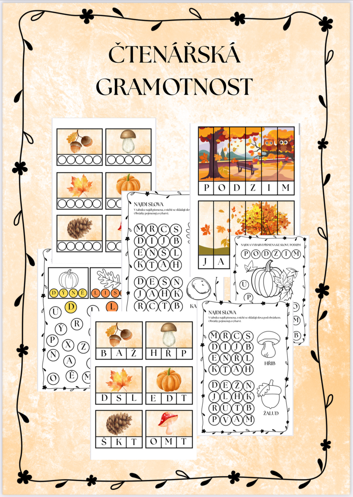 Materiál "čtenářská gramotnost-podzim" je zaměřen na rozvoj čtenářské gramotnosti u dětí předškolního věku. Podporuje přirozený vztah dítěte k textu.
