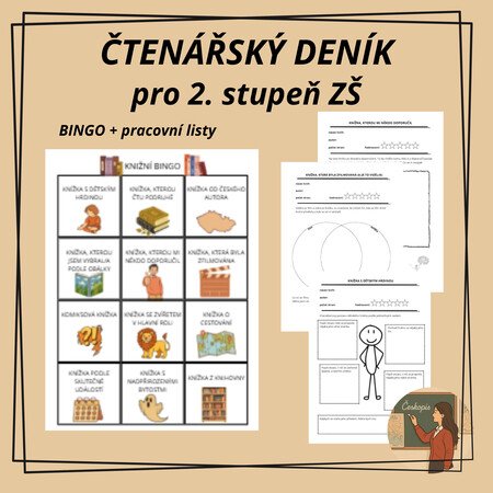 Tento soubor pracovních listů je určen žákům 2. stupně základní školy a podporuje jejich samostatné čtení, kritické myšlení a kreativitu. Hlavním motivačním prvkem je Knižní bingo, které žákům nabízí dvanáct různých „typů knih“ (např. kniha z knihovny, se zvířetem v hlavní roli, podle skutečné události, český autor apod.).