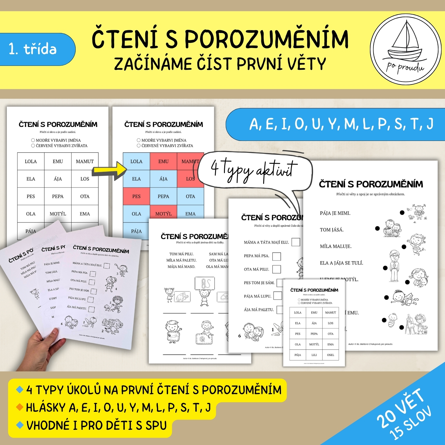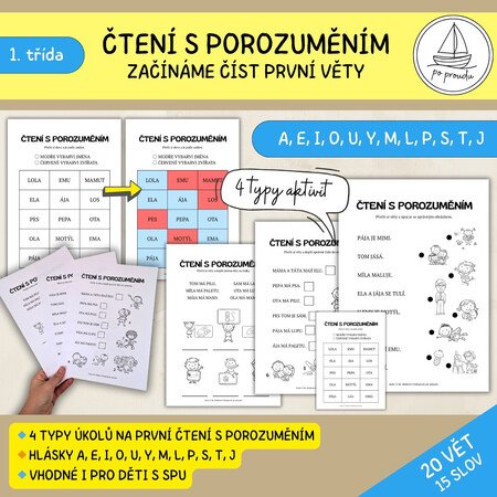 Tento materiál přináší jednoduché, dobře strukturované aktivity, které pomáhají dětem rozvíjet čtení s porozuměním už od prvních krůčků. Úkoly pracují s hláskami A, E, I, O, U, Y, M, L, P, S, T, J a jsou vhodné pro začínající čtenáře i žáky se speciálními vzdělávacími potřebami. ✨