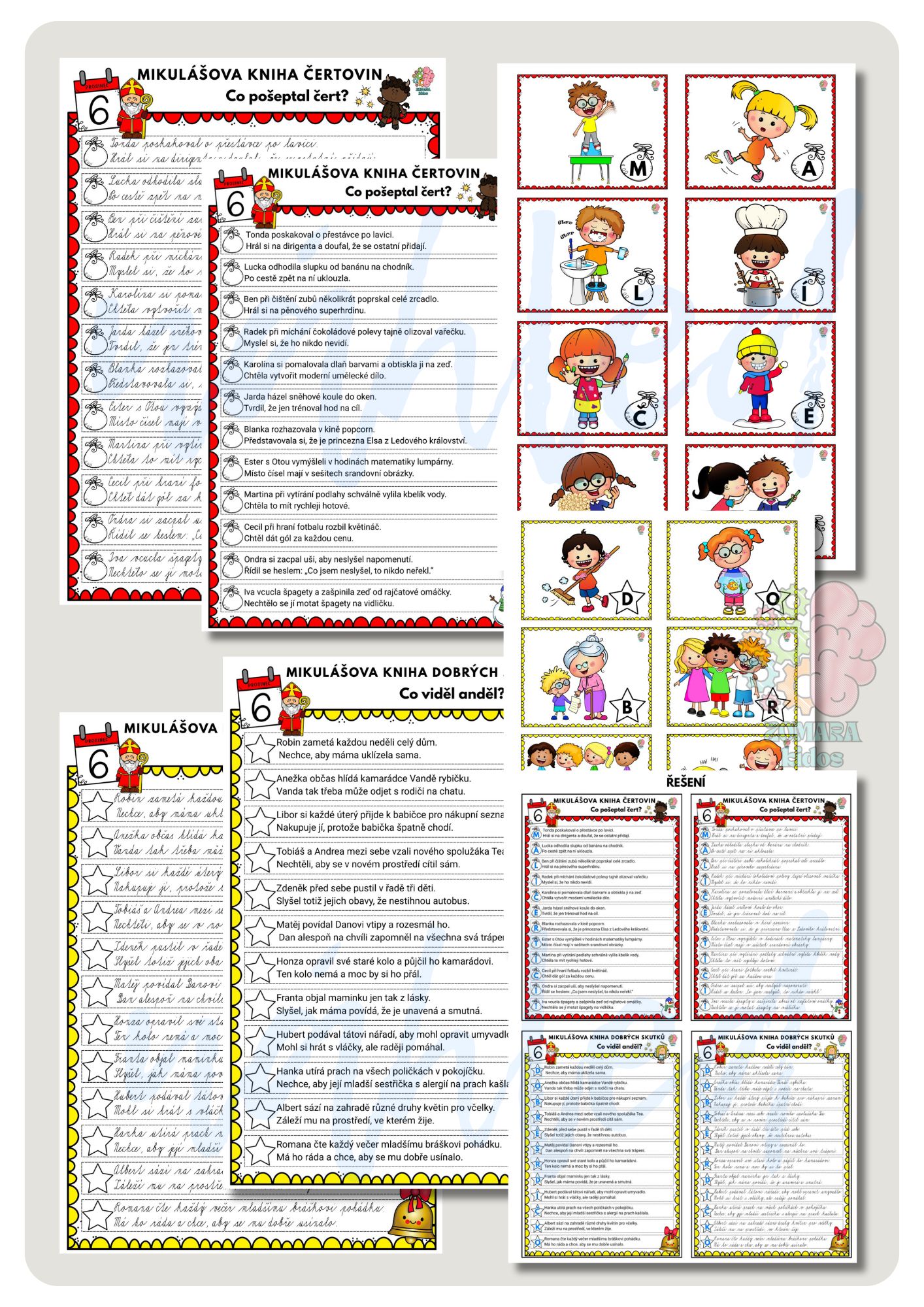 - 2 pracovní listy s větami (12 čertovin a 12 dobrých skutků) a dvě tajenky. Ideální na rozložení do dvou dnů v období okolo Mikuláše.