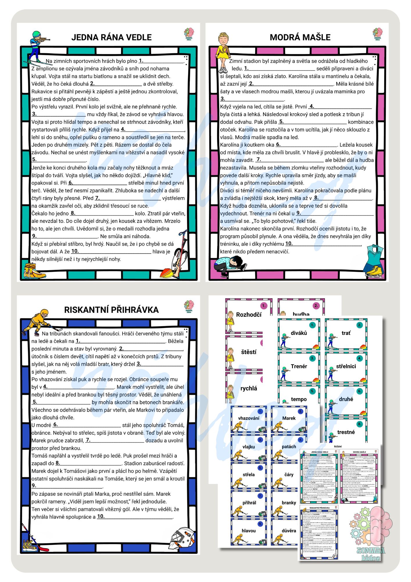 • 10 kartiček se slovy k doplnění ke každému příběhu