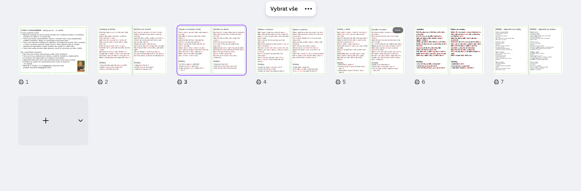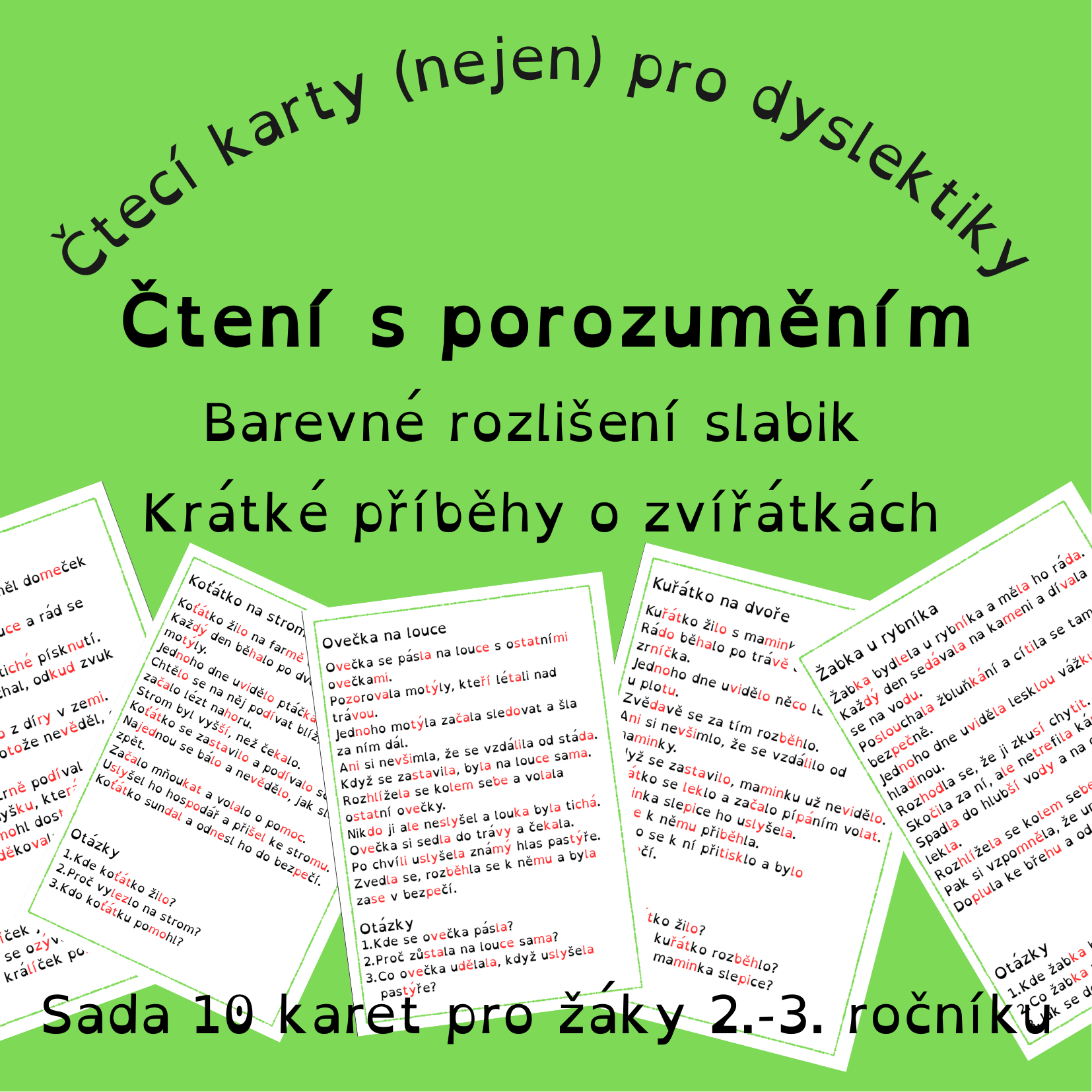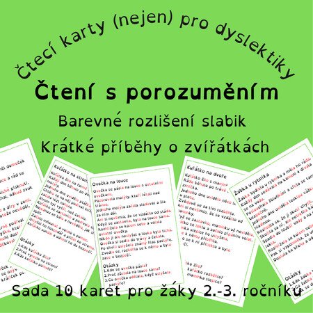 Materiál obsahuje zelenou sadu 10 čtecích kartiček (A5) s krátkými příběhy o zvířátkách pro 2.–3. ročník.