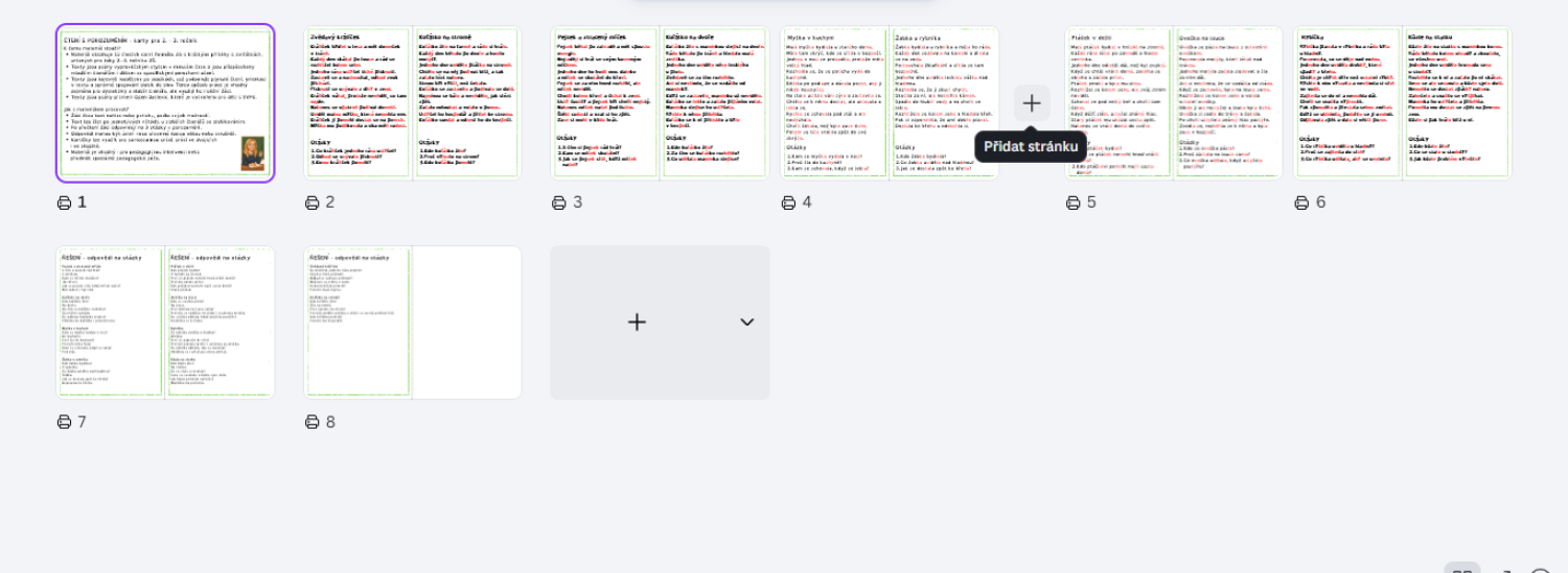 Materiál obsahuje postupně obtížnější texty – od jednoduchých příběhů o zvířátkách až po delší vypravěčské texty ze života dětí.