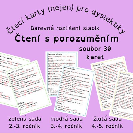 Kompletní soubor tří sad čtecích karet pro žáky 2.–5. ročníku ZŠ.
