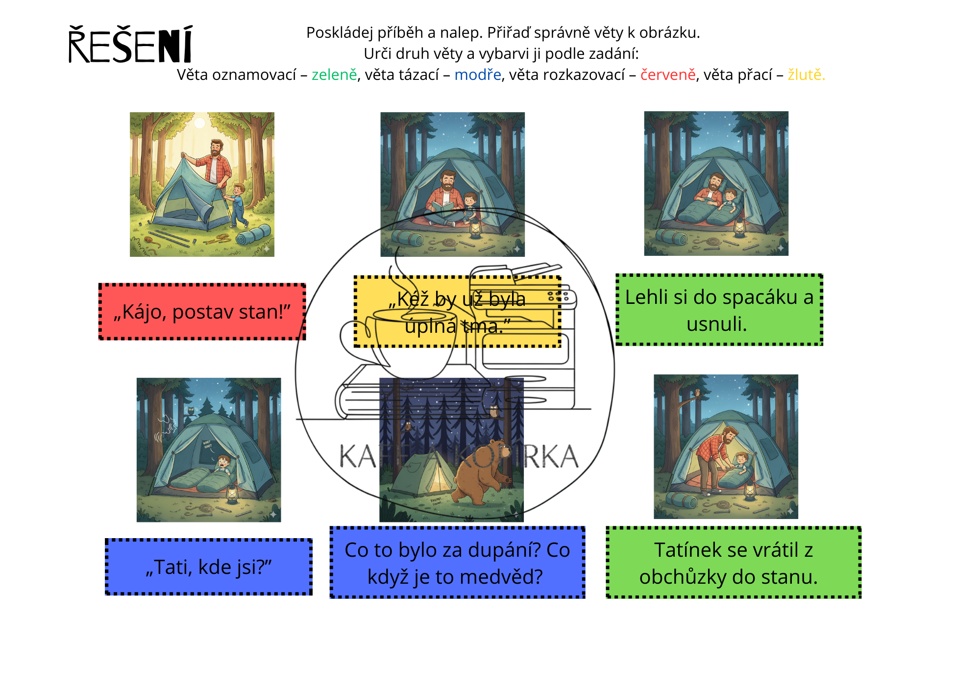 · řazení příběhu podle posloupnosti, určování druhu vět a předvídání děje.