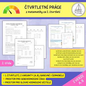 Materiál Čtvrtletní písemní práce z českého jazyka pro 2. ročník (1. čtvrtletí). Materiál je tvořen 8 pracovními listy v černobílé variantě i barevném provedení. Soubor obsahuje 2 varianty (označeno A, B).