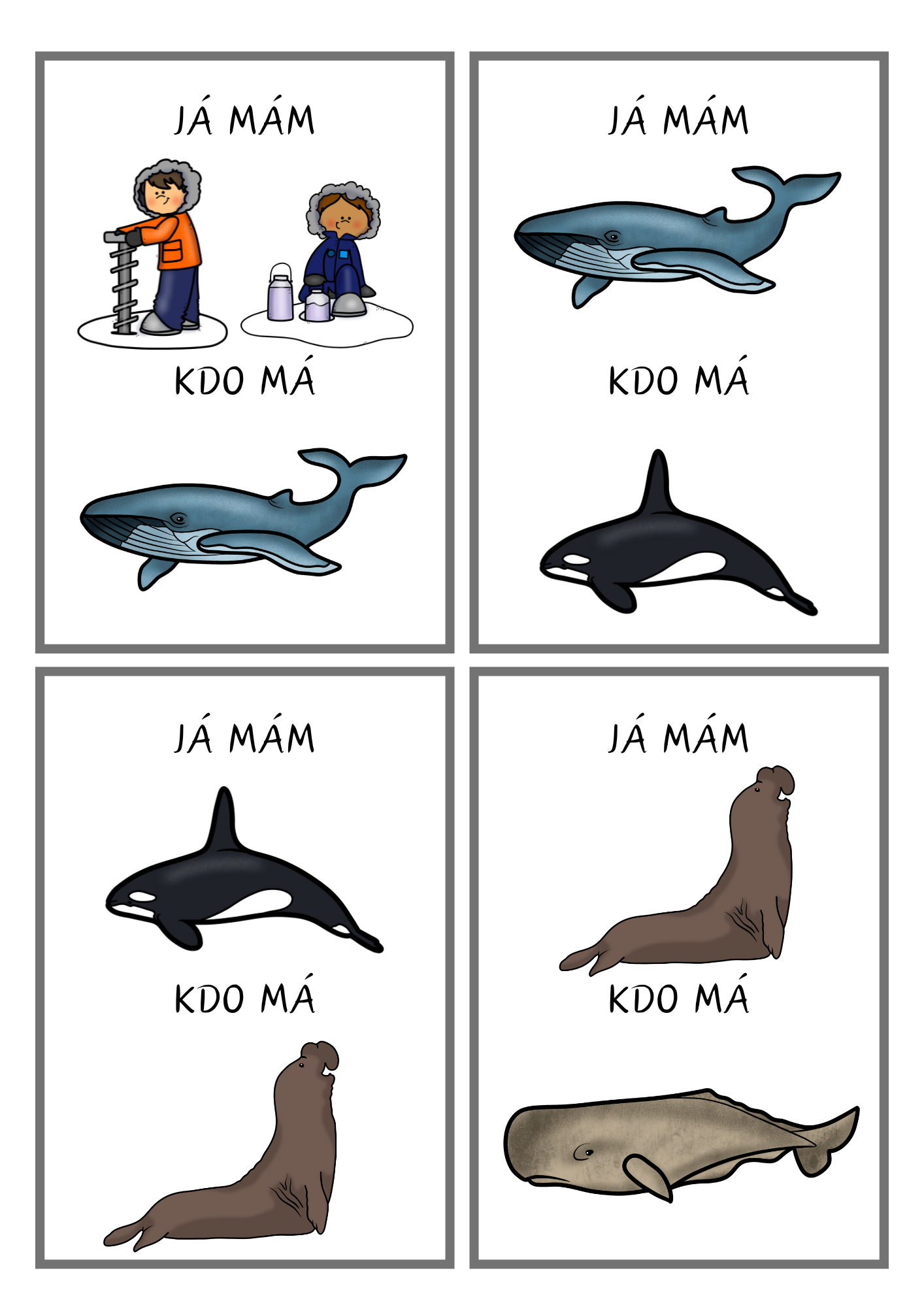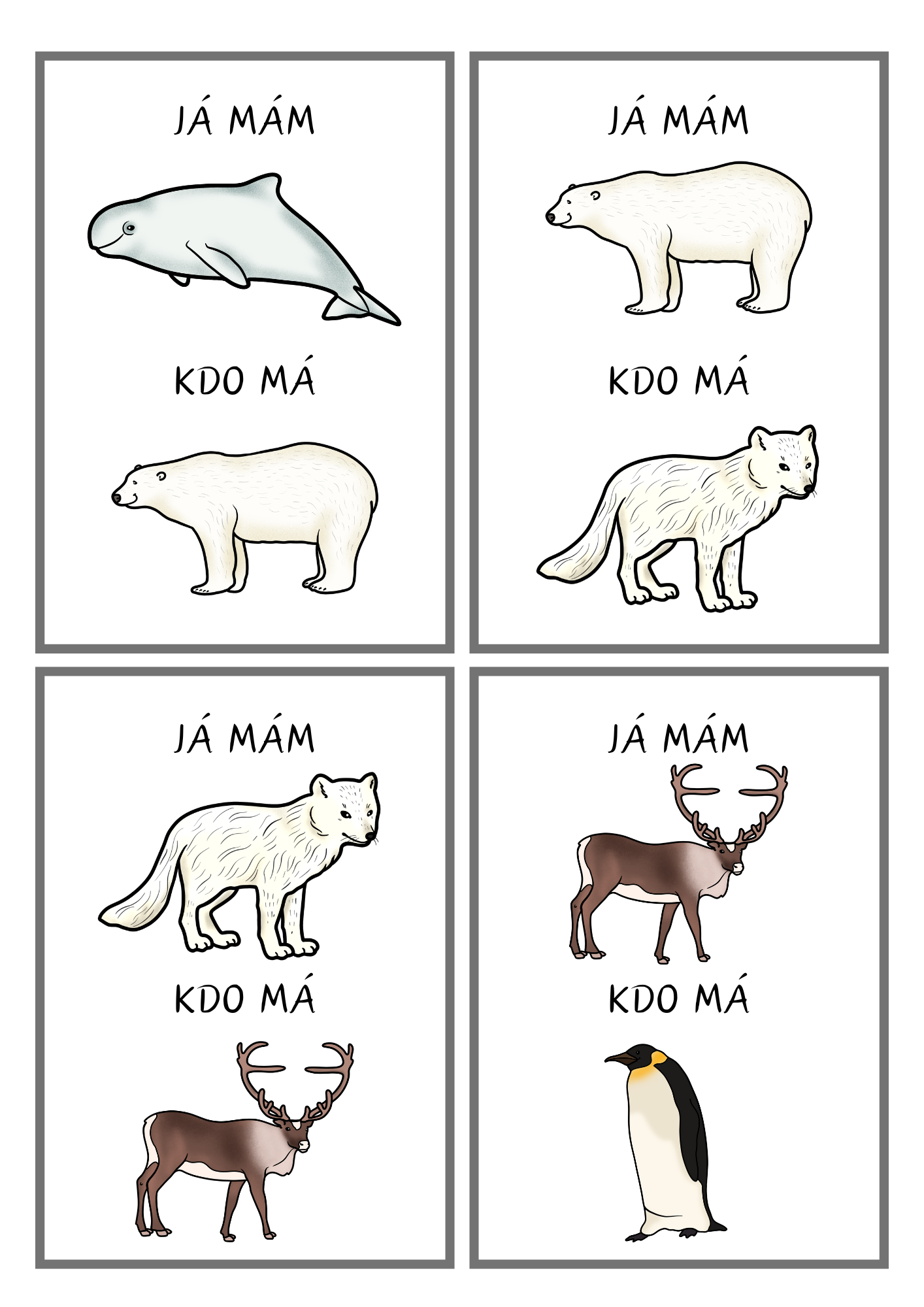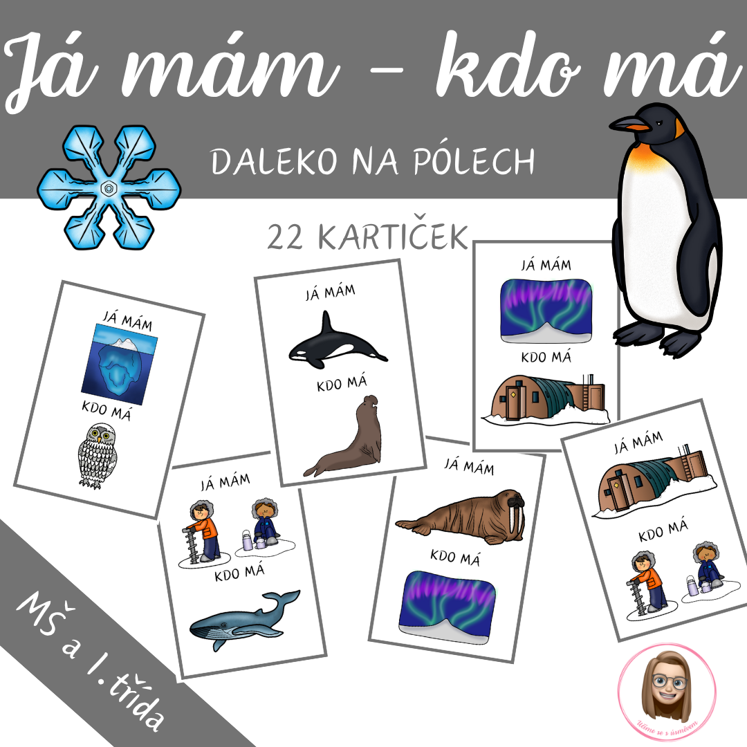 Materiál obsahuje 22 herních karet s polárními zvířaty a pojmy z Arktidy a Antarktidy.