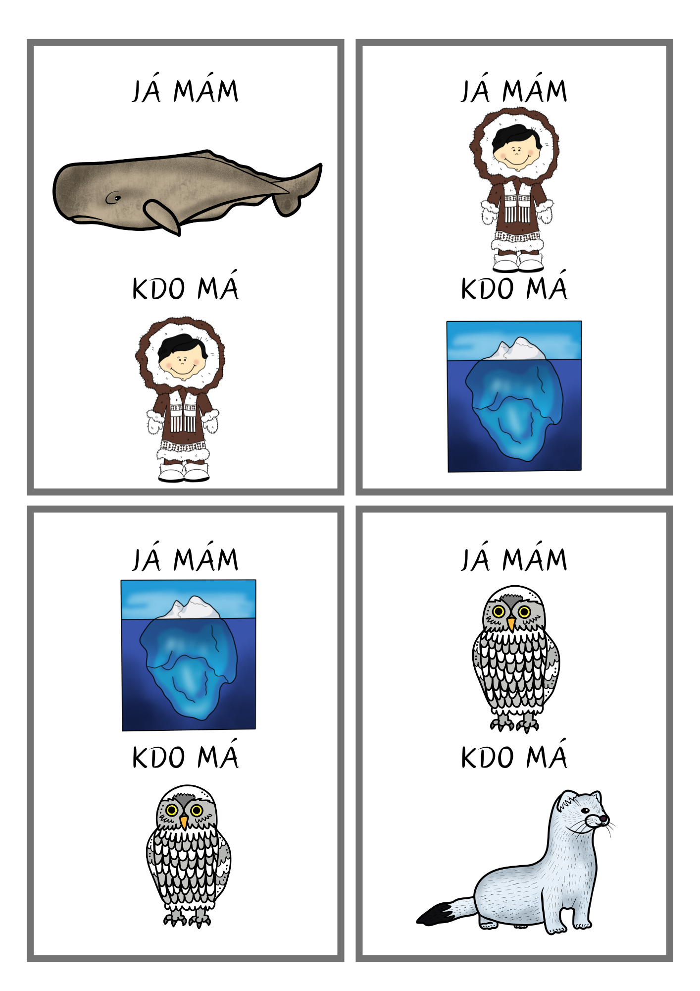 - Sada 22 barevných a 22 černobílých obrázků z polárních oblastí.