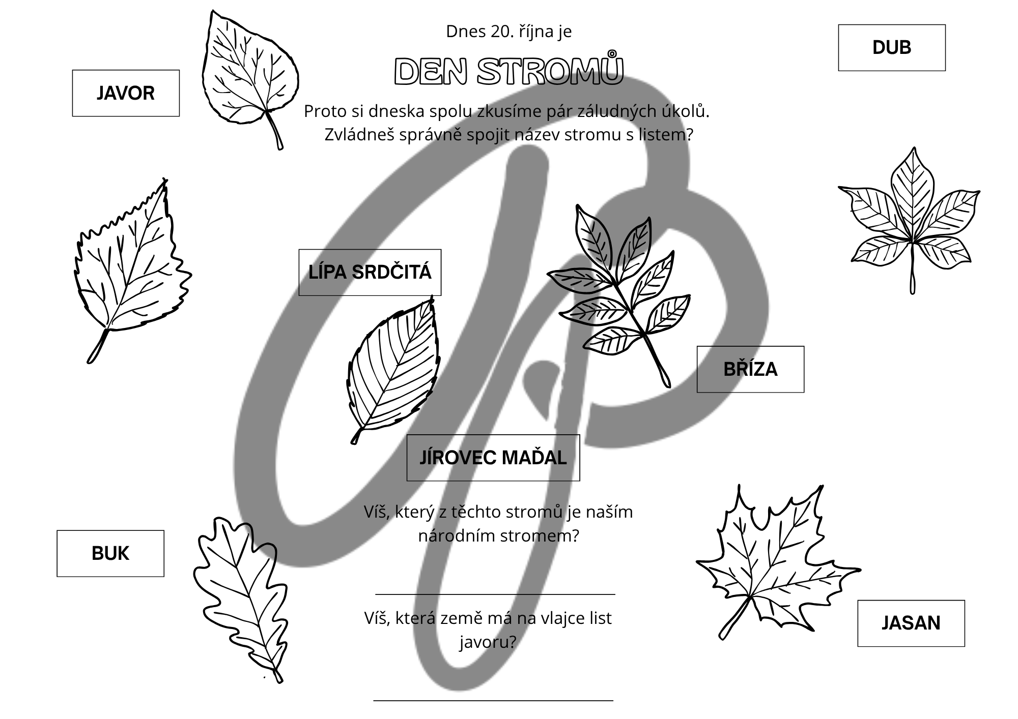 Pracovní list Den stromů nabízí hravé úkoly, které děti učí poznávat listnaté i jehličnaté stromy, přemýšlet o jejich významu a současně procvičují čtení, psaní, počítání i tvořivost. Najdou zde poznávání listů a jehličí, otázky ze světa stromů, skryté názvy ve větách, vybarvování, doplňovačky i hádanky. K práci stačí jen tužka a pastelky, všechny úkoly lze zvládnout během jedné vyučovací hodiny. Cílem listu je nejen procvičit učivo, ale hlavně probudit v dětech radost z poznávání a úctu k přírodě, která nás obklopuje.