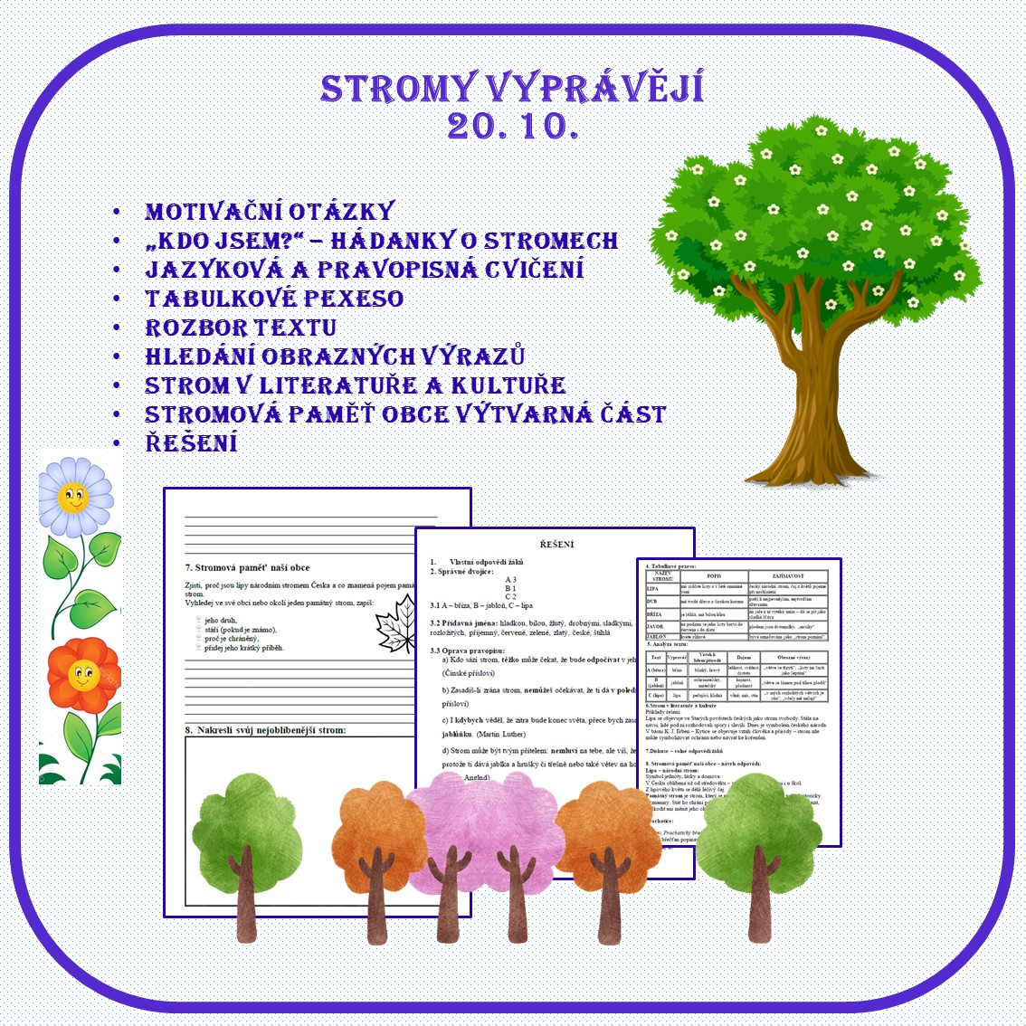 Materiál vede žáky k poznávání stromů prostřednictvím čtení, jazykových cvičení a tvořivých úkolů. Žáci hledají stromy podle popisu, opravují citáty, vyplňují tabulkové pexeso a rozvíjejí jazykový cit při hledání obrazných výrazů. Součástí je i propojení s literaturou, diskuse o vztahu člověka k přírodě a badatelský úkol o památných stromech v okolí.