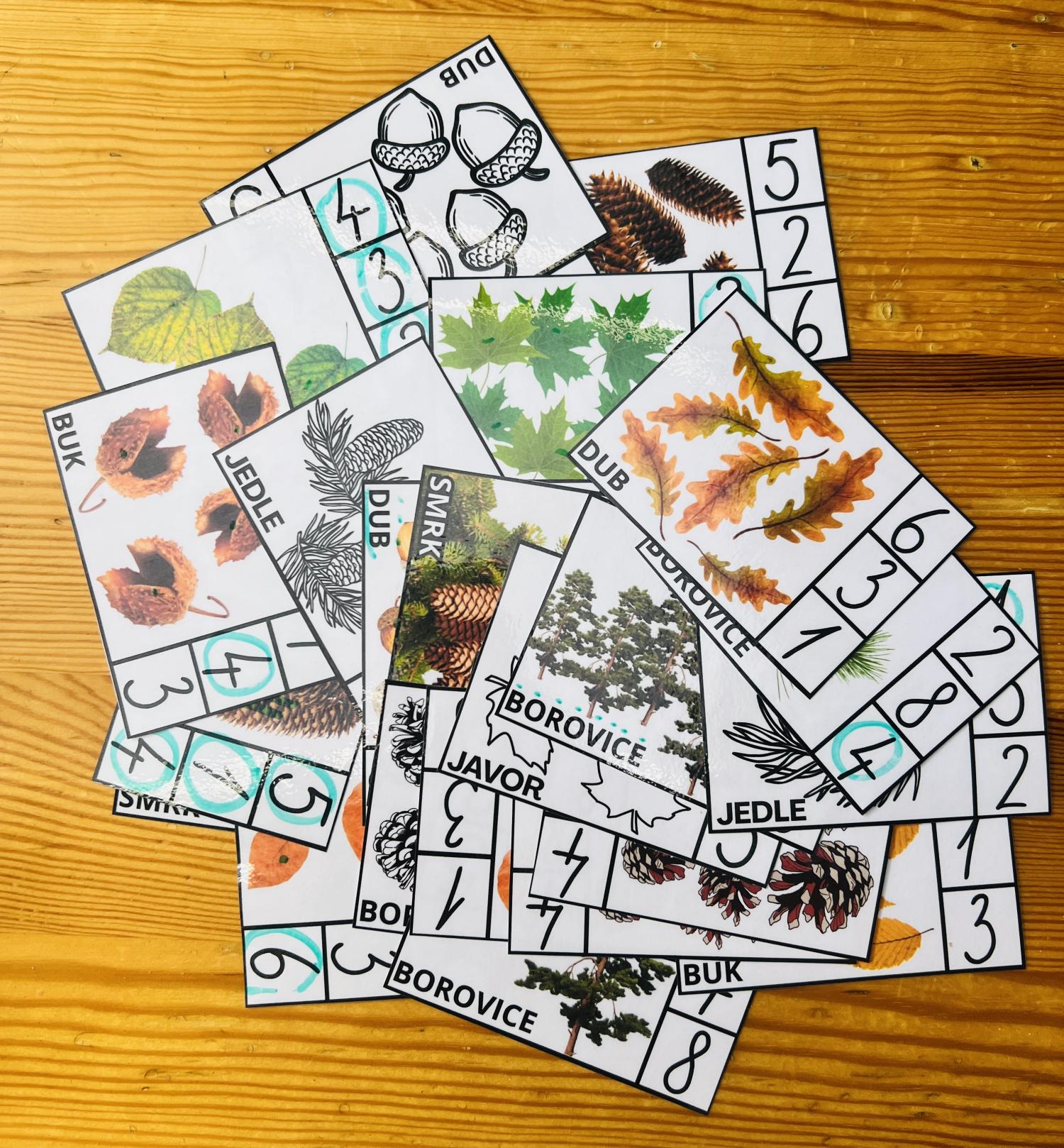 - 🌳 Trimino „Umím stromy“ – skupinová skládanka, která rozvíjí spolupráci, komunikaci a pomáhá dětem poznávat druhy stromů.