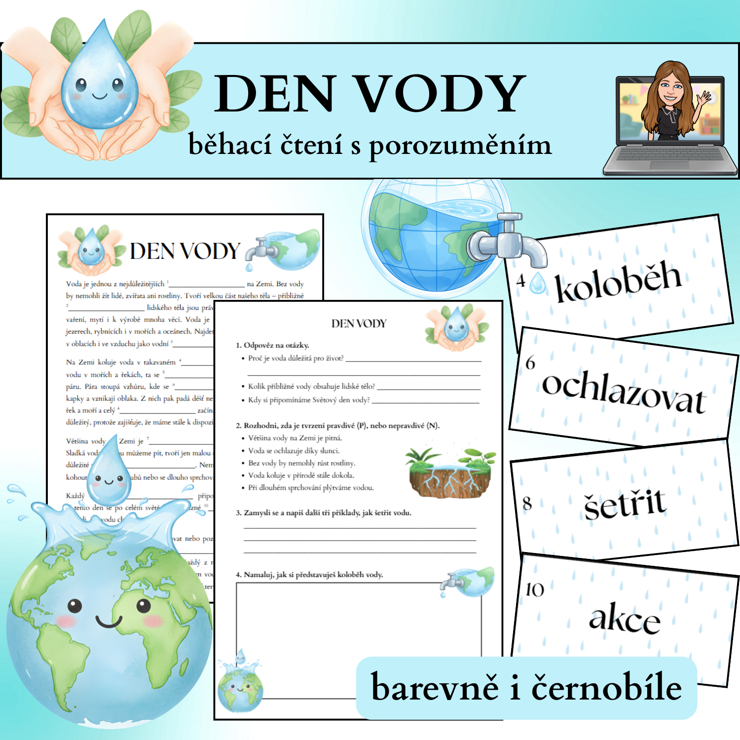 - text o vodě (čtenářská gramotnost 3. - 5. roč.) B/ČB