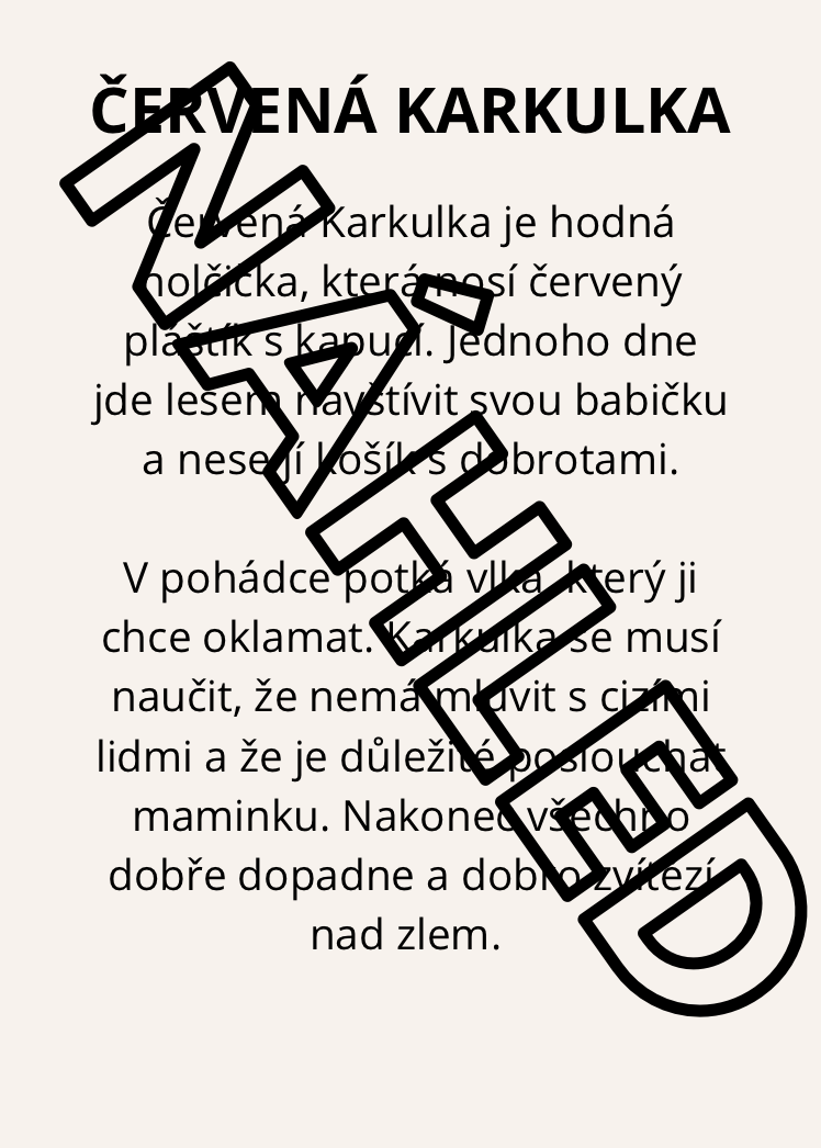 Kartičky lze využít také například na hru poznávání pohádkových postav.