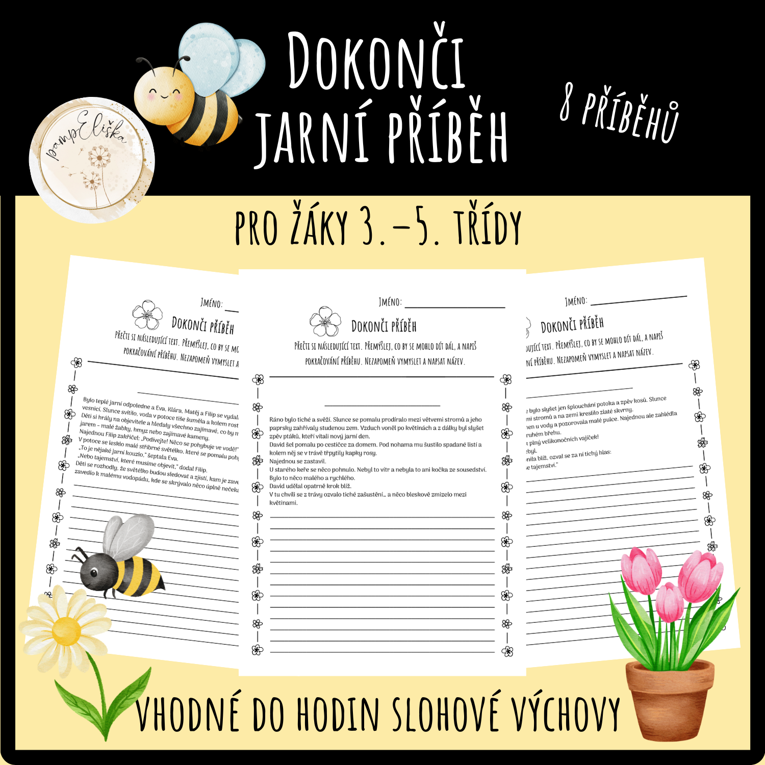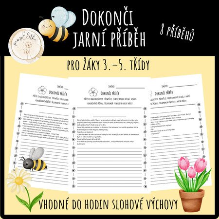 Materiál obsahuje 8 pracovních listů s nedokončenými jarními a velikonočními příběhy.