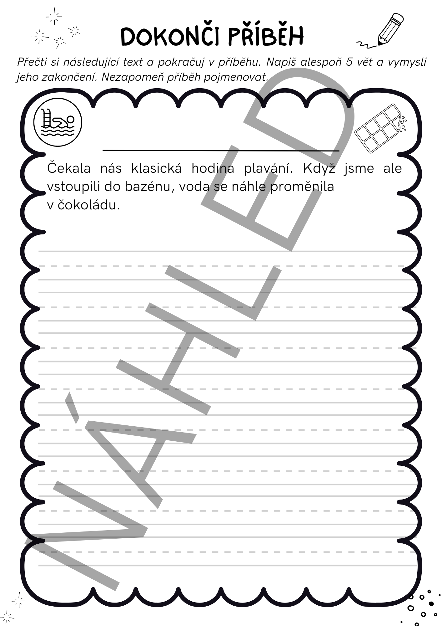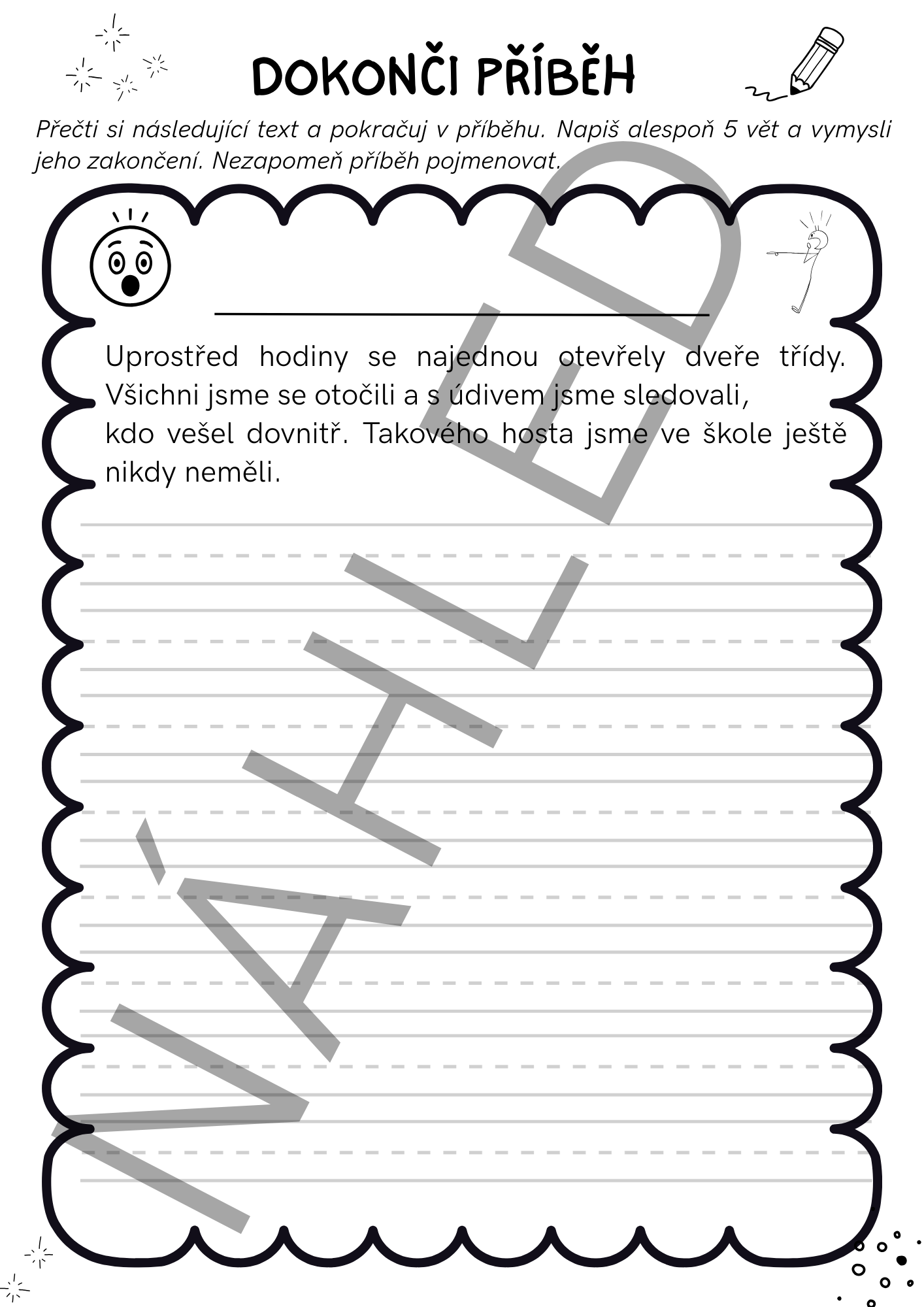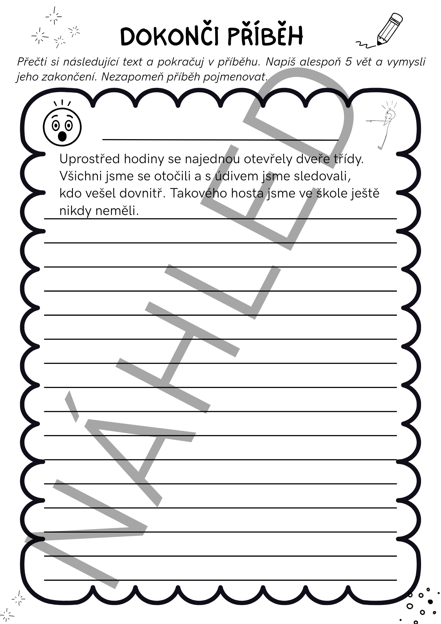 - Prostor pro: pokračování příběhu, vymyšlení názvu, vlastní zakončení děje
