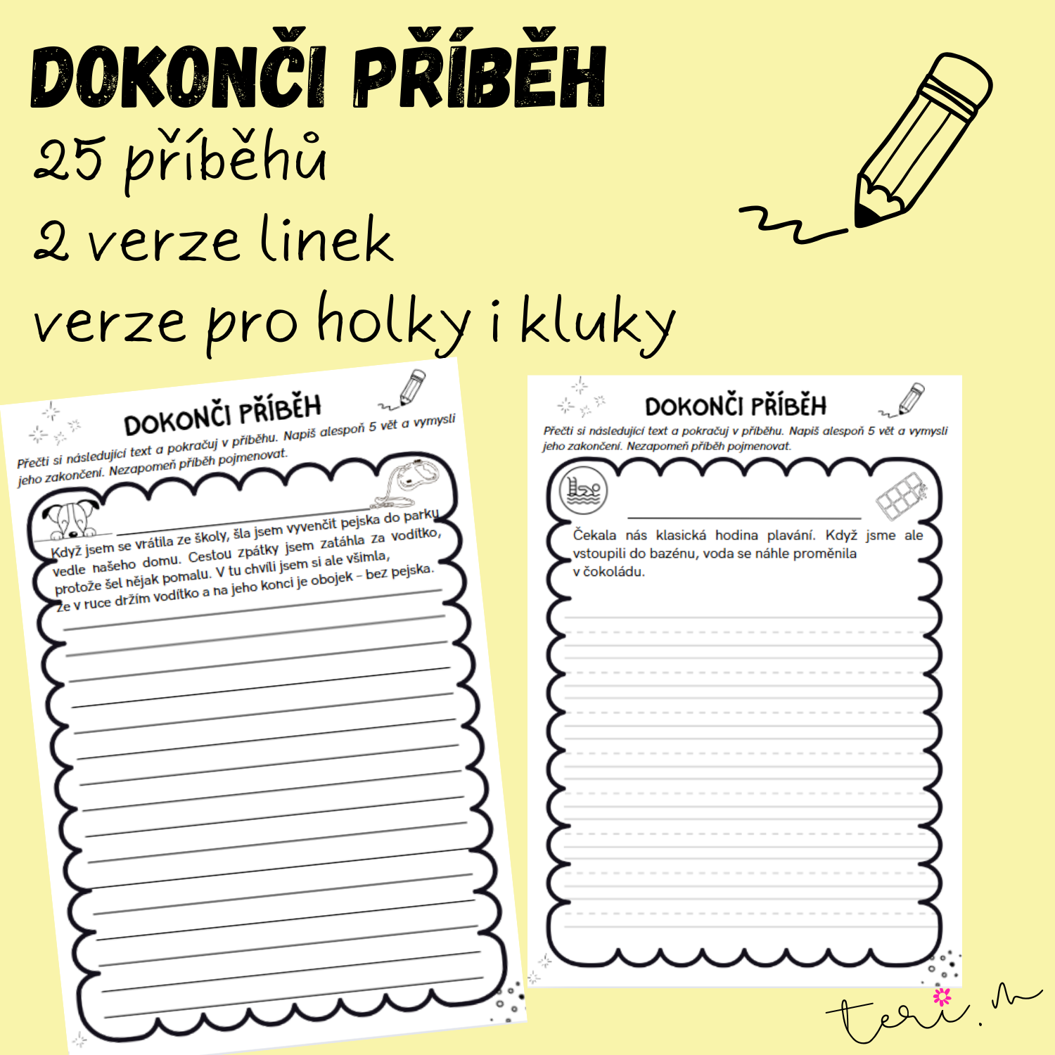 Tento materiál je zaměřený na rozvoj tvůrčího psaní, fantazie, práce s textem a vyjadřovacích schopností žáků. Obsahuje 25 originálních začátků příběhů, které děti motivují k dalšímu psaní a přemýšlení nad dějem.