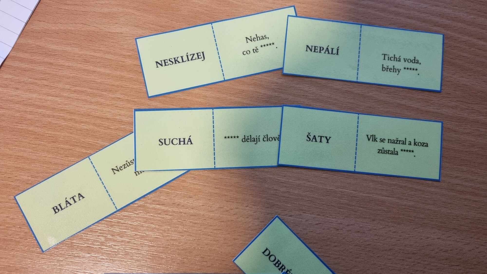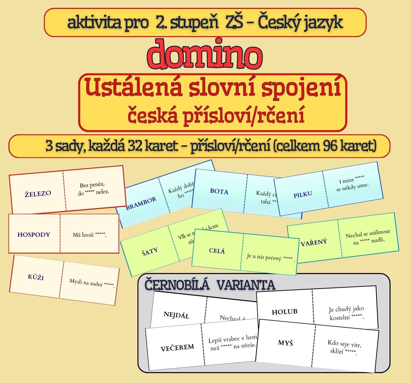 Tento materiál obsahuje hru typu DOMINO, kde si žáci procvičí USTÁLENÁ SLOVNÍ SPOJENÍ - přísloví a rčení.
