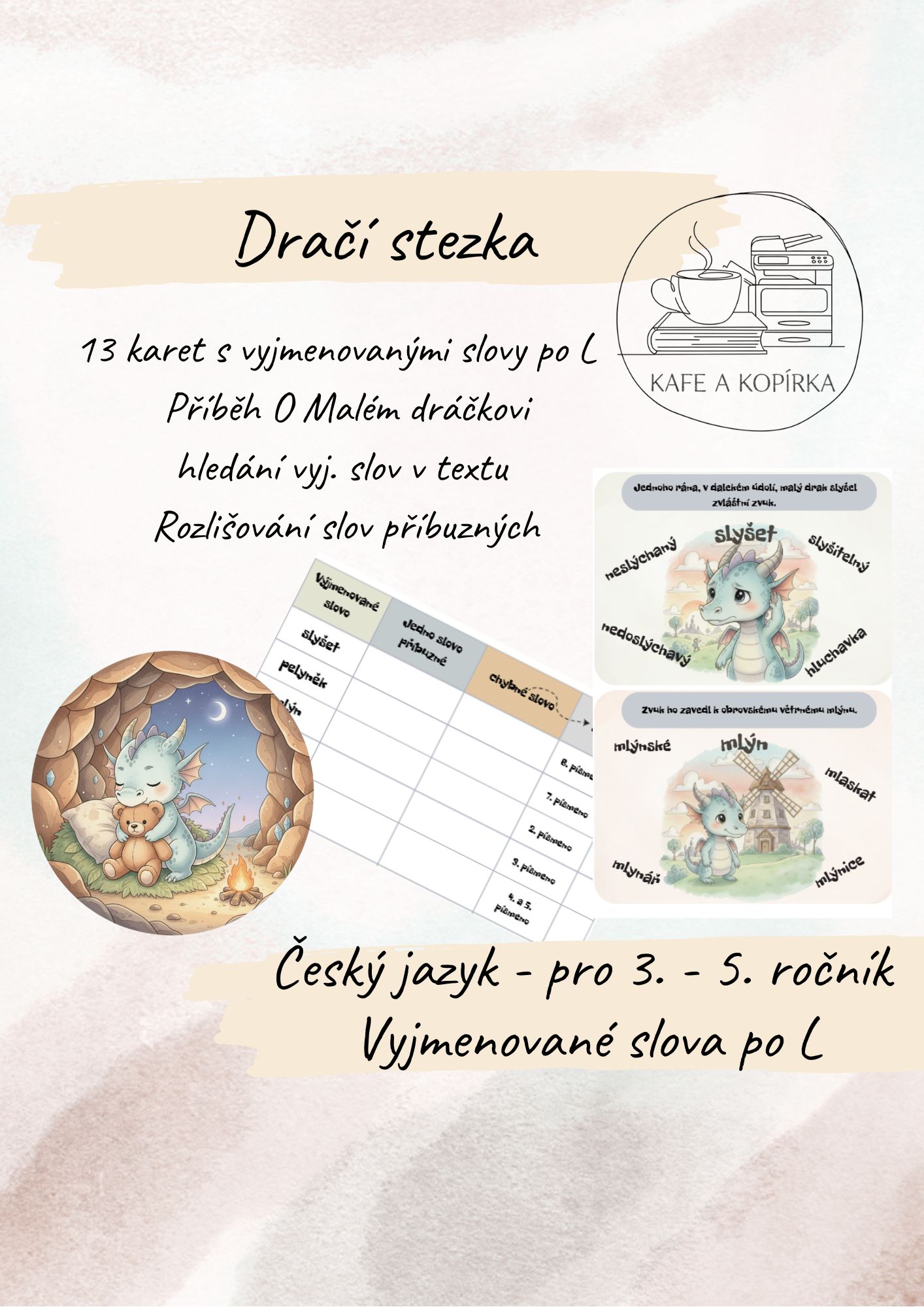 Materiál obsahuje práci s vyjmenovanými slovy po L. Materiál je vhodný k vyvozování či upevňování vyj.slov a slov příbuzných. Dále žáci pomocí materiálů trénují čtenářské a pisatelské dovednosti. Je vhodný pro žáky 3. - 5. ročníku.