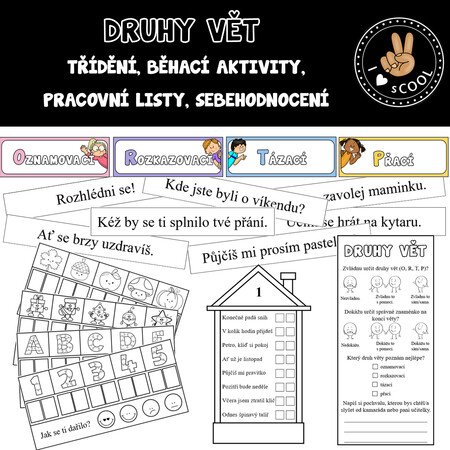 Výukový materiál pro ZŠ je určen k procvičování, určování a upevnění druhů vět. Žáci se učí rozlišovat věty oznamovací, tázací, rozkazovací a přací a zároveň si upevňují dovednost správně doplňovat znaménko na konci věty. Soubor obsahuje sadu vět k třídění, pohybové běhací aktivity, domečky k vlepení do sešitu a na závěr jednoduché sebehodnocení. K materiálu je přiloženo také řešení pro rychlou kontrolu učitele.