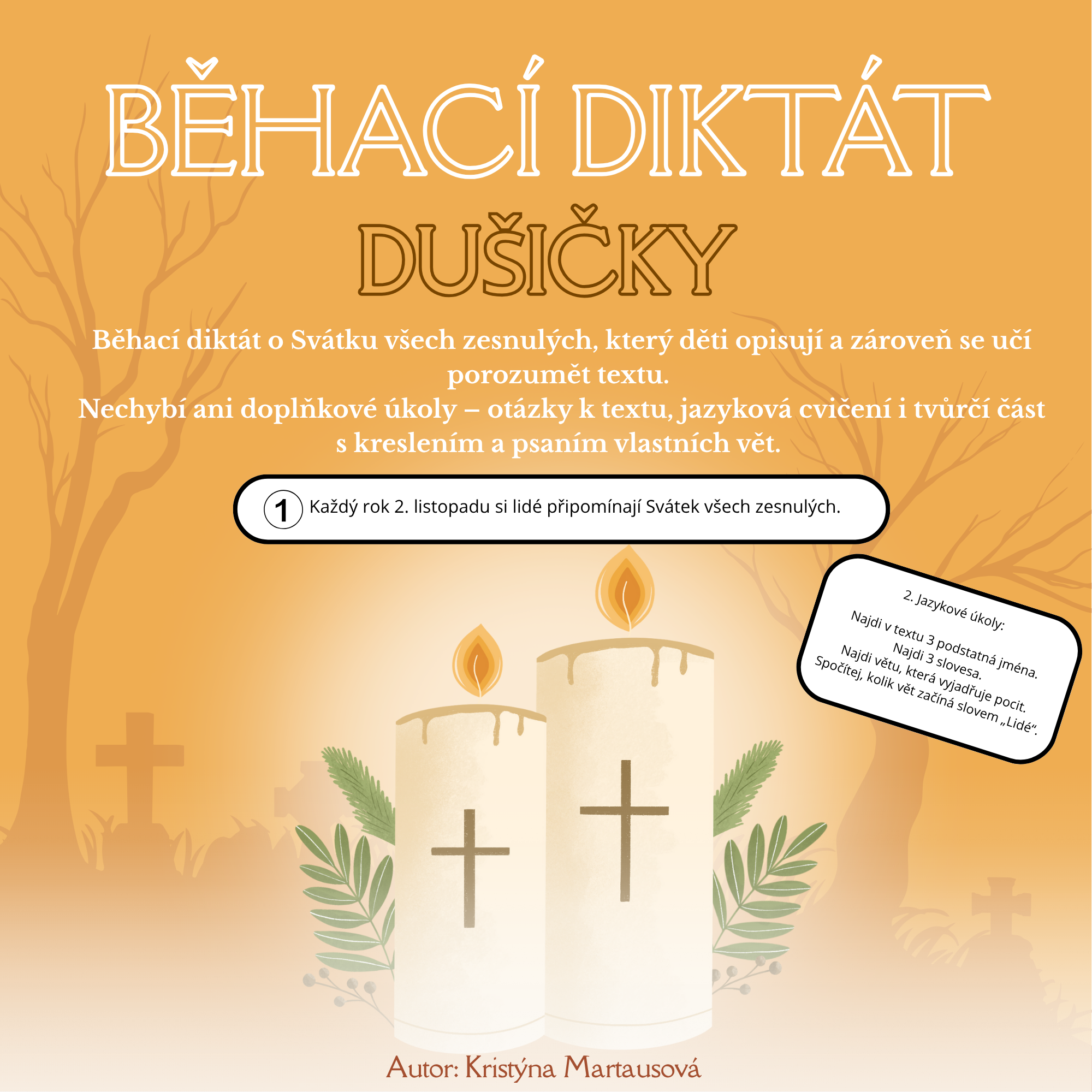 Podzimní běhací diktát, který dětem přiblíží význam svátku Dušiček. 🍂
