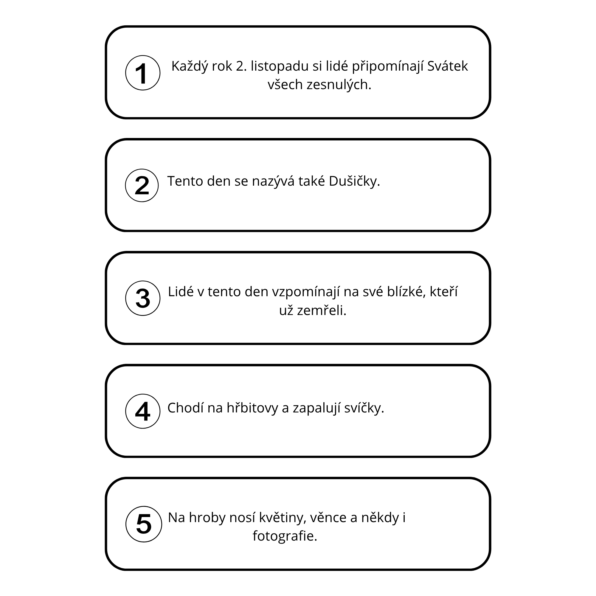 V materiálu najdete text o Svátku všech zesnulých, k němu otázky na porozumění, jazyková cvičení i tvůrčí úkol pro rozvoj psaní a fantazie. 💭