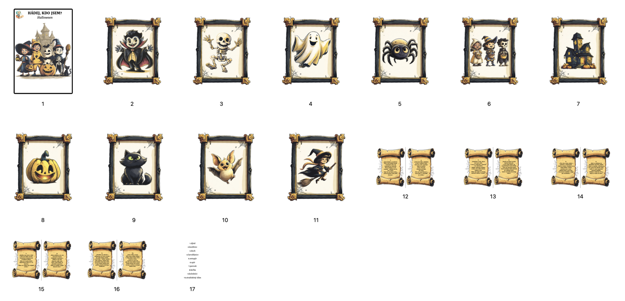 👻 Hádej, kdo jsem? – děti čtou popisy samy ve skupinách a přiřazují je k obrázkům.