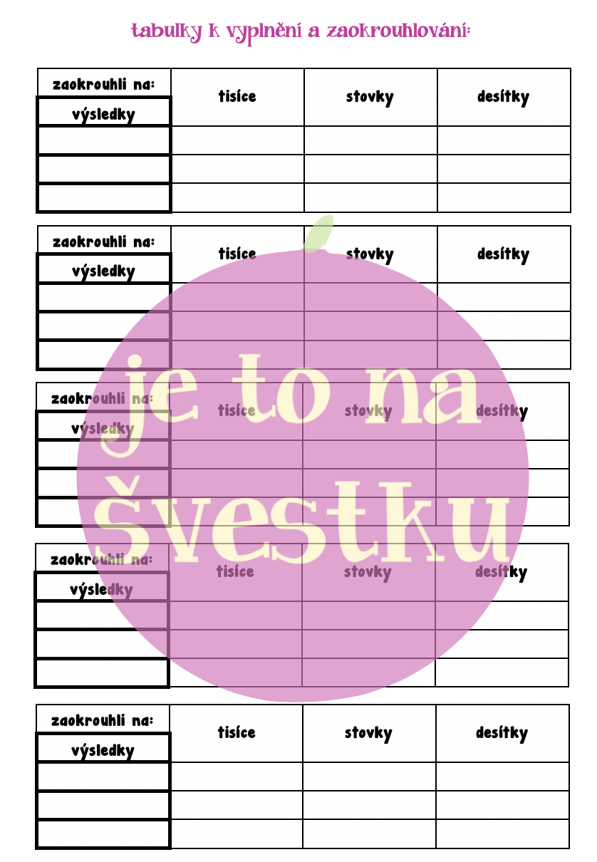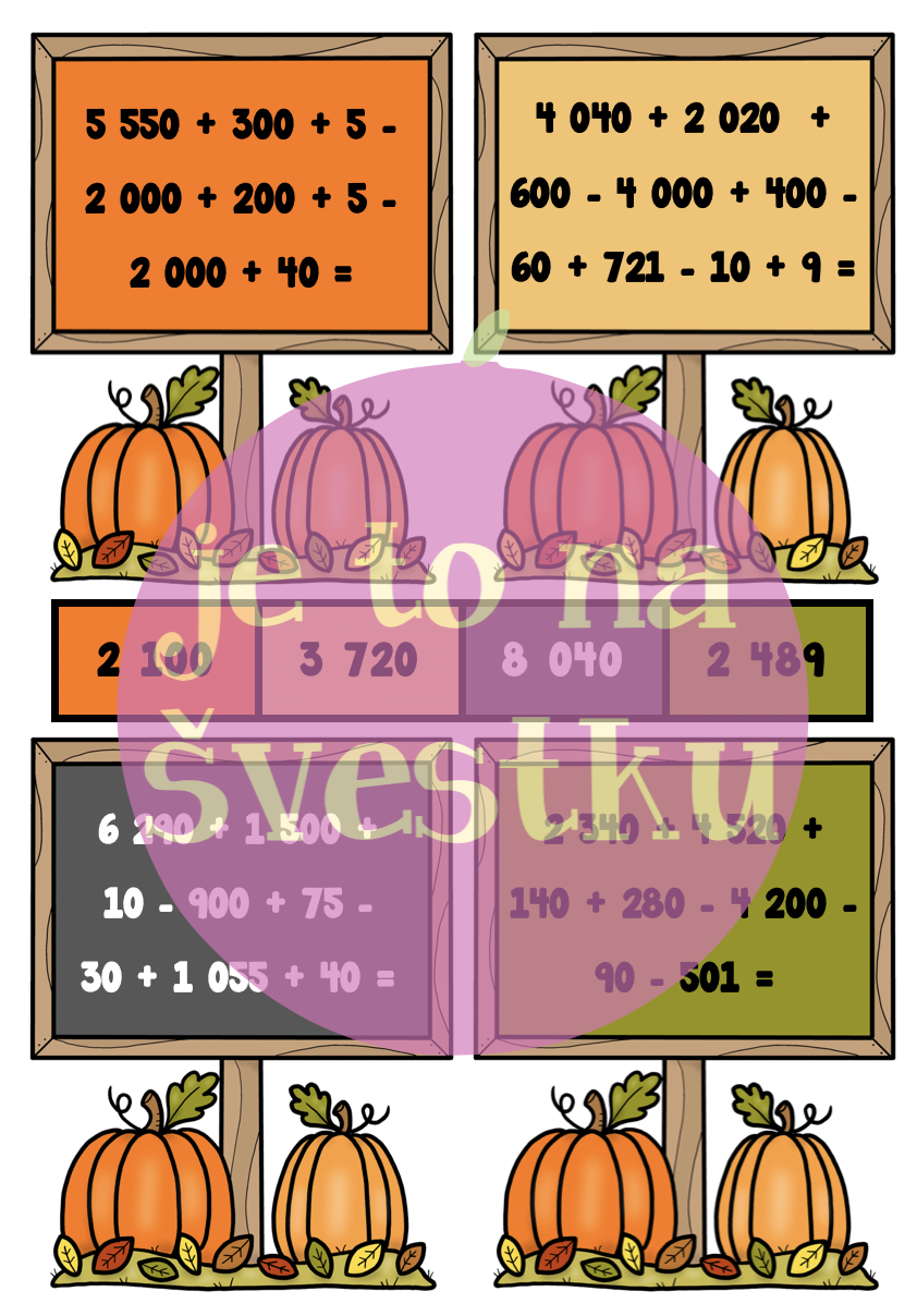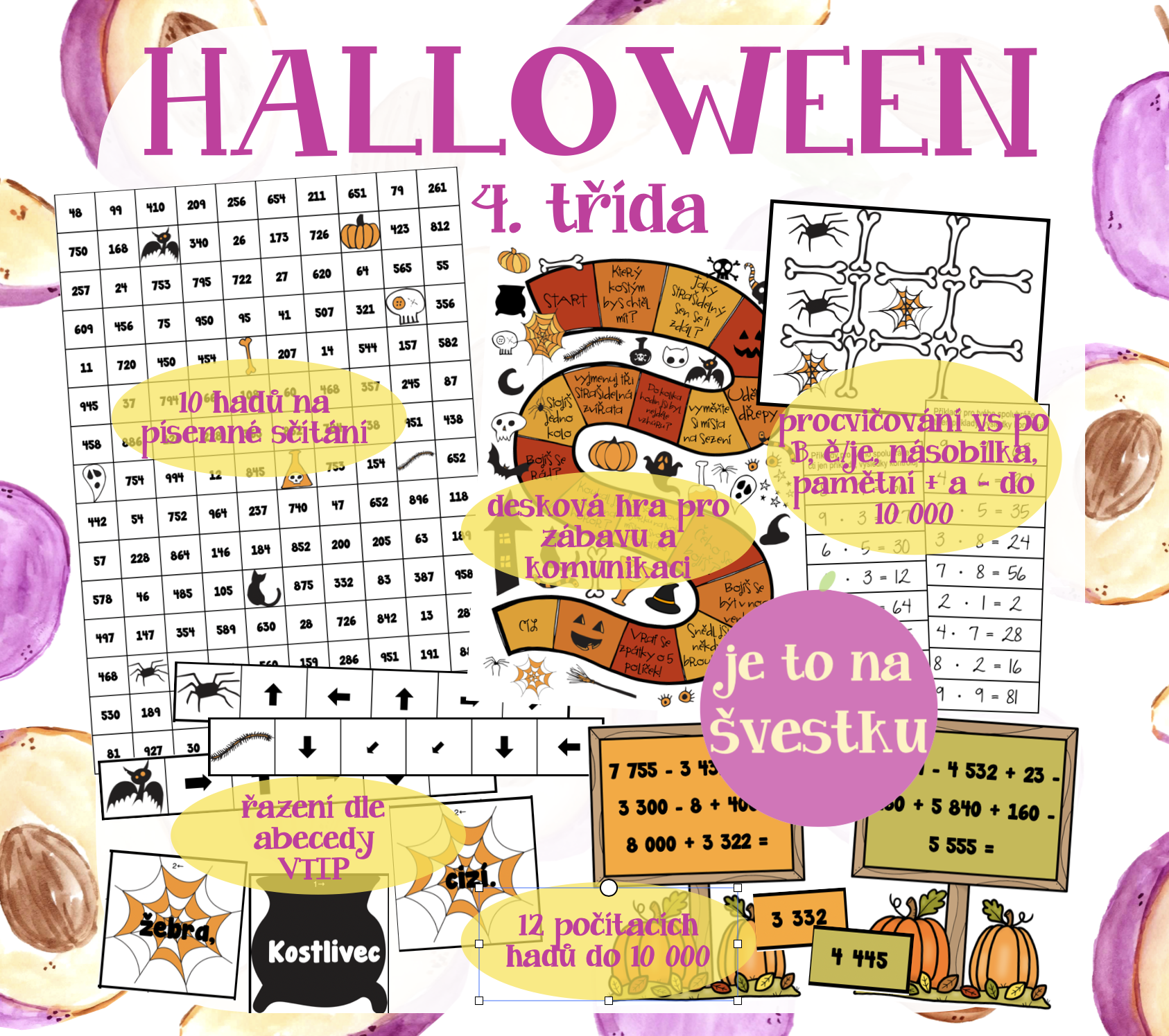 Materiál obsahuje 5 různých aktivit - počítací hady, opakovací piškvorky, řazení dle abecedy, deskovou hru a hledání cesty. Učivo, které zde děti procvičí: písemné sčítání do 10 000, pamětní sčítání a odčítání do 10 000, řazení slov dle abecedy, zaokrouhlování, vyjmenovaná slova po b, ě/je a malou násobilku.