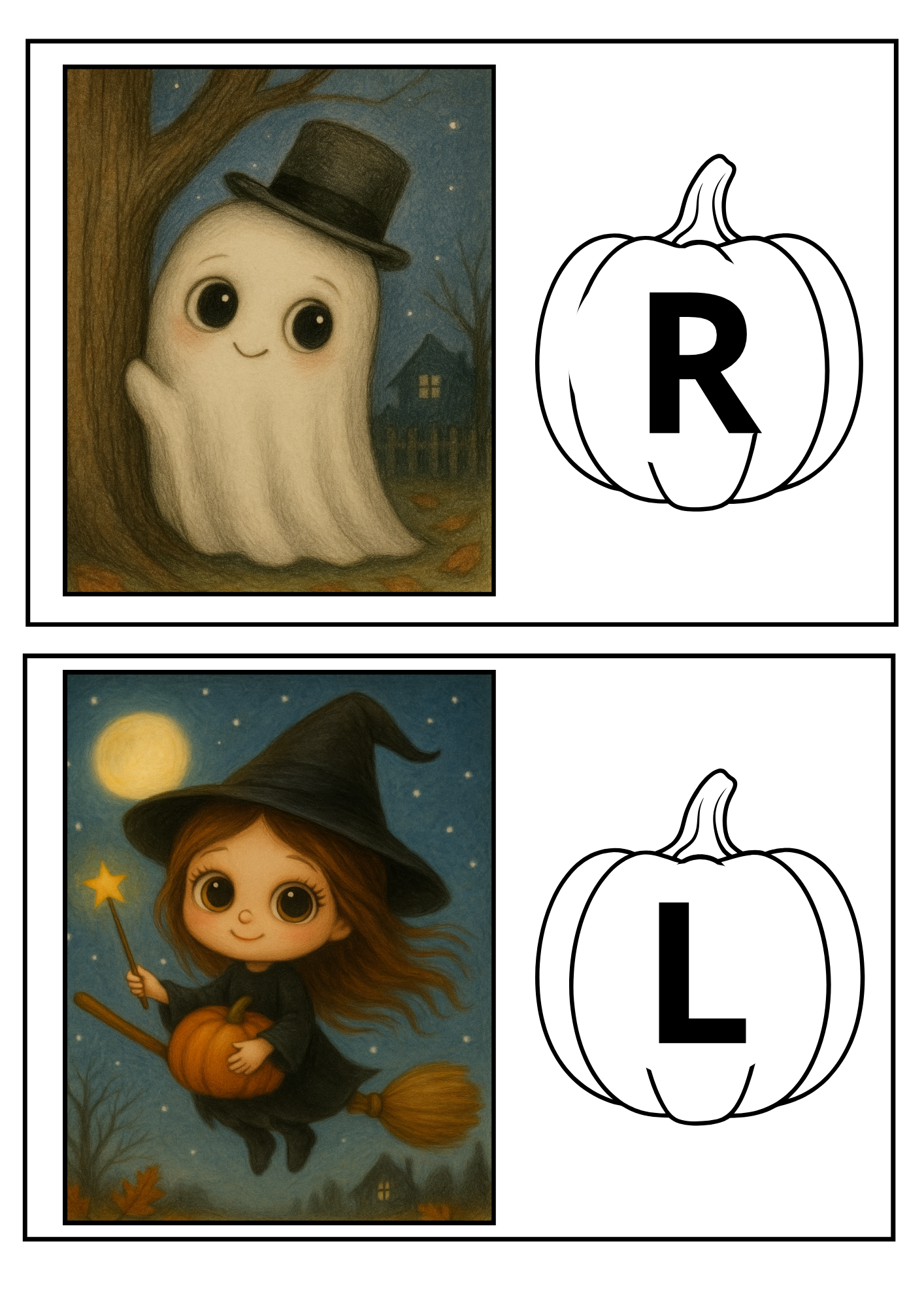 Na zadní stranu pracovního listu doporučujeme vytisknout i poslední úkol – řízené kreslení podle příběhu. Děti čtou či poslouchají text a zároveň kreslí halloweenskou krajinu.