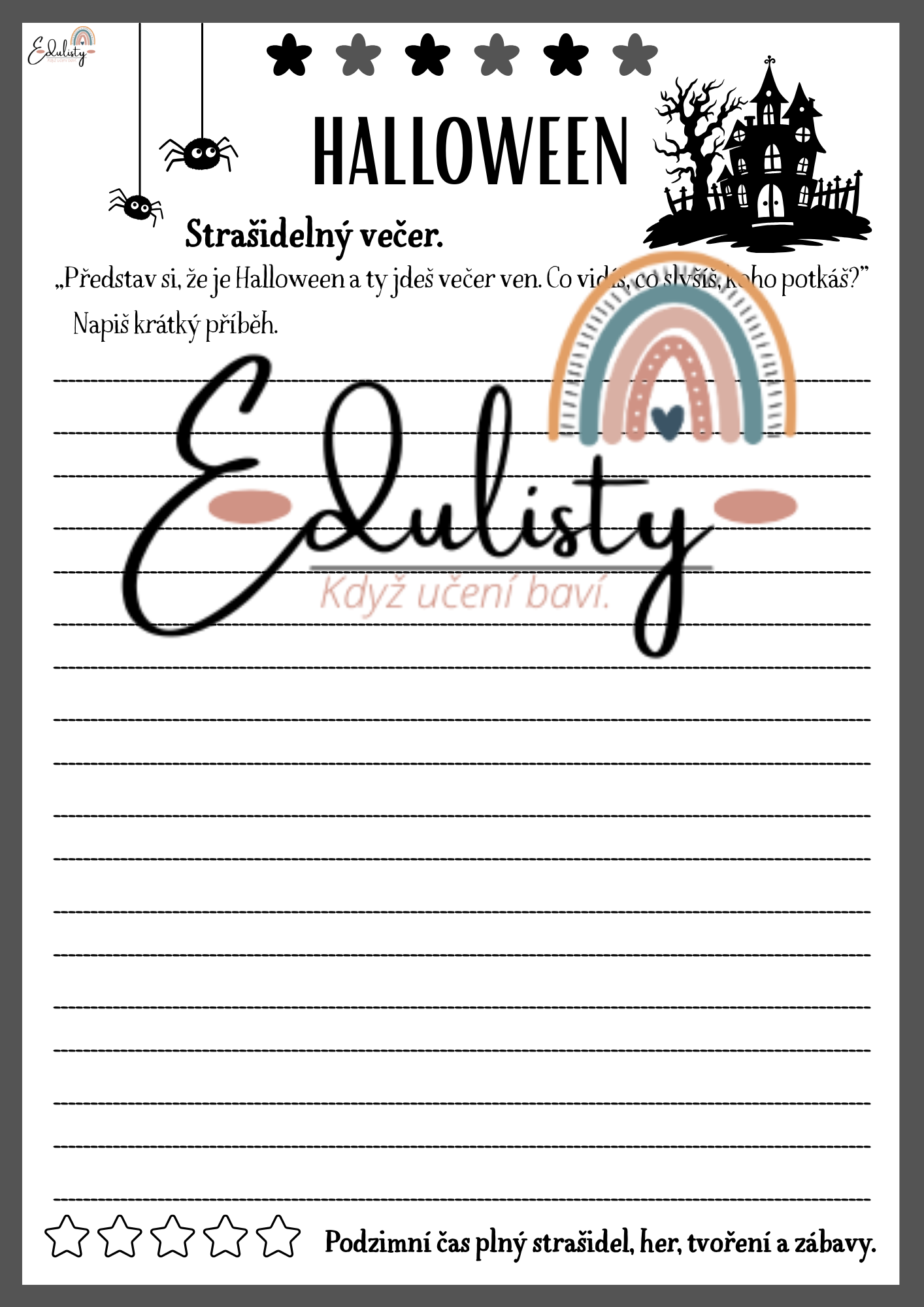 – 1 list pro tvořivé psaní („Strašidelný večer…“)