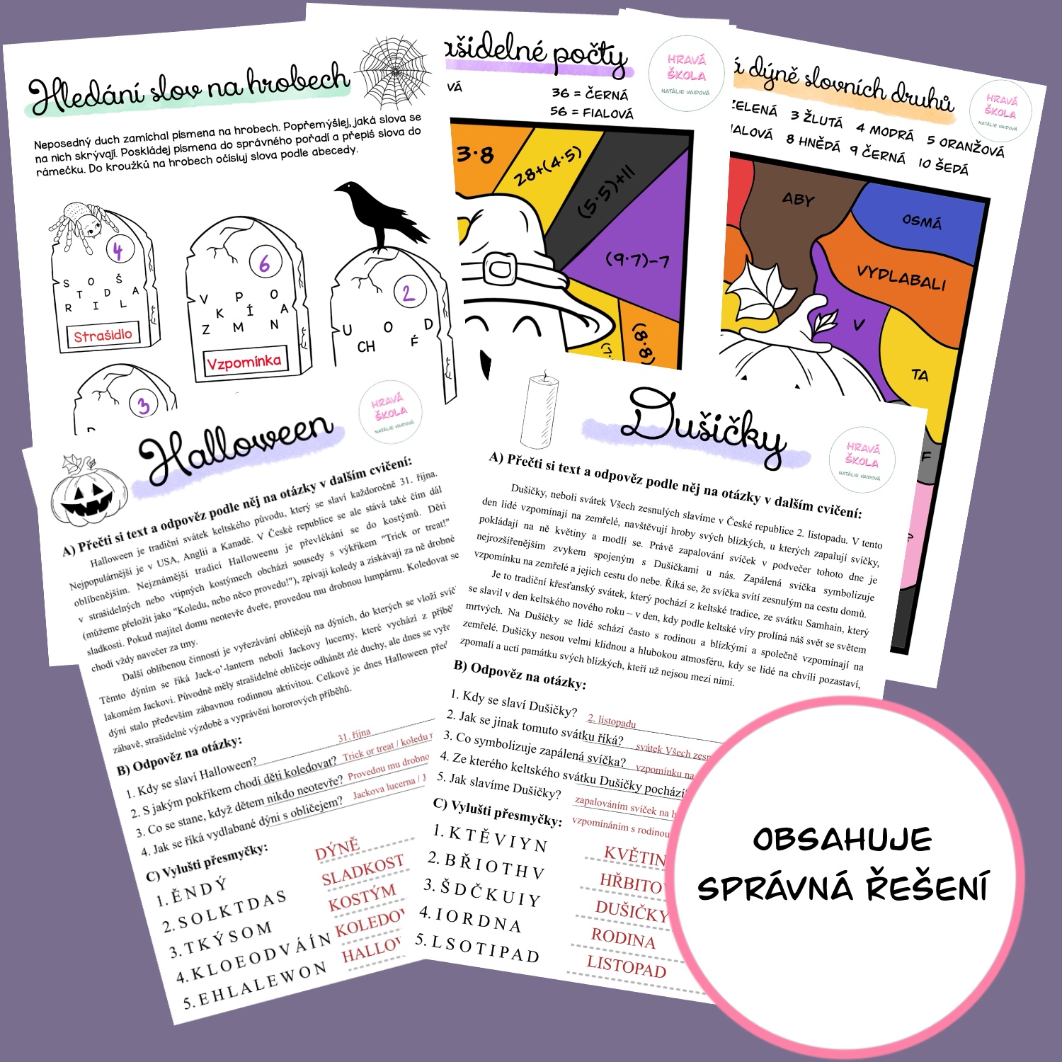 🎃 MATERIÁL obsahuje 5 PL s TEMATIKOU HALLOWEEN, DUŠIČKY do ČJ a M pro 3.-5. TŘÍDU 👻