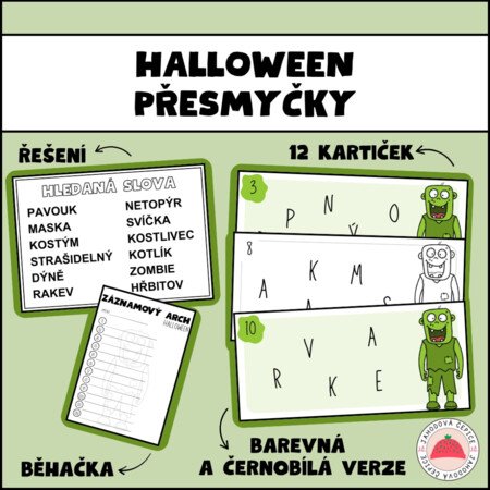Tato zábavná hra je ideální pro žáky, kteří si chtějí otestovat své dovednosti při luštění přesmyček. Žáci si procvičí svou slovní zásobu a kreativitu při luštění přesmyček spojených s tématikou Halloween.