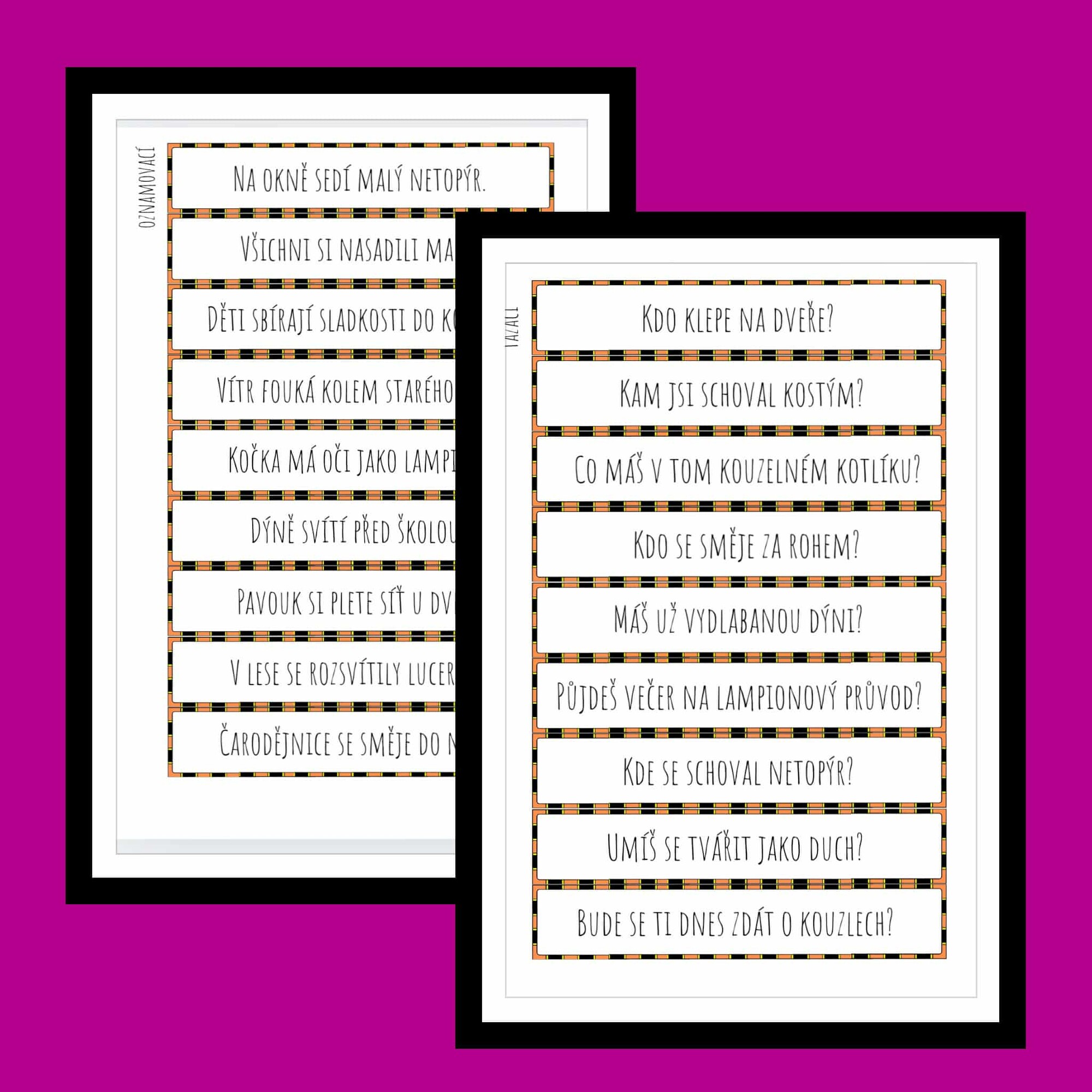 Materiál je určen pro žáky 1. stupně a slouží k procvičení rozpoznávání a třídění vět podle druhu. Věty jsou tematicky laděné do halloweenského období, aby pro děti bylo učení hravé, zábavné a motivační.