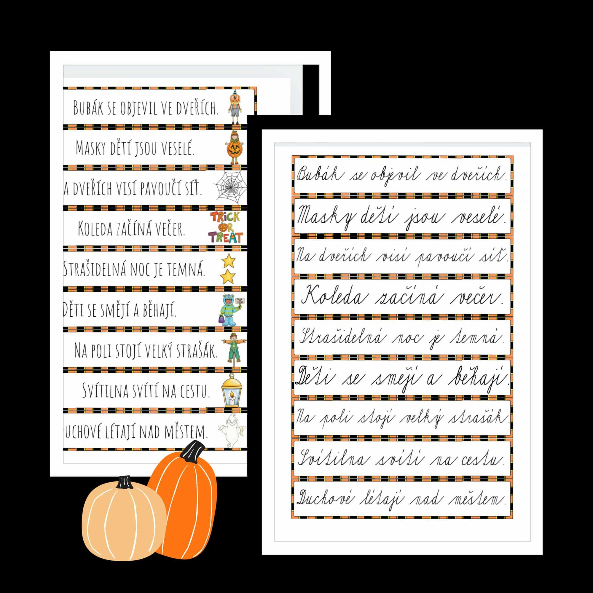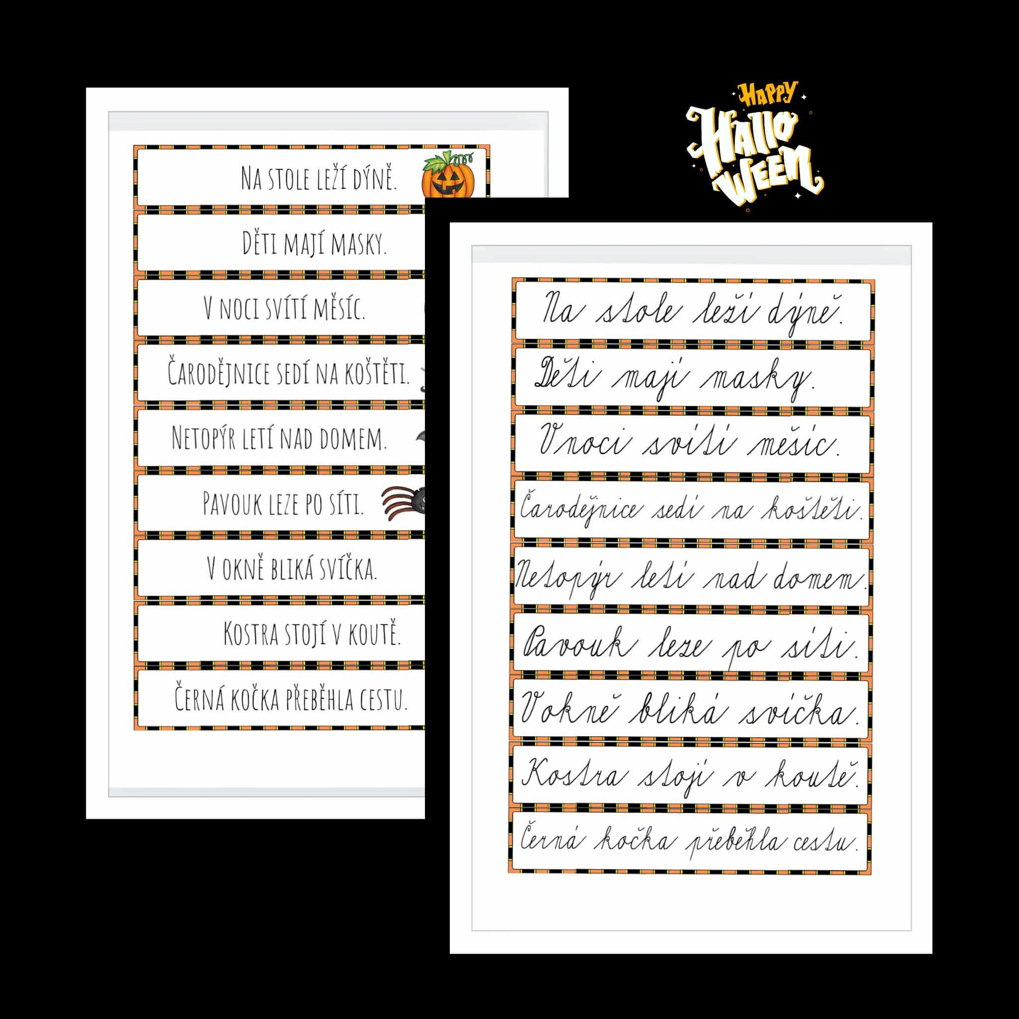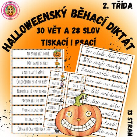 Tento materiál je zaměřen na téma Halloween a je určen pro žáky 2. ročníku. Obsahuje 28 tematických slov a 30 vět v tiskací i psací podobě, které lze využít k opisu nebo k běhacímu diktátu. Texty jsou sestaveny tak, aby odpovídaly jazykové úrovni starších žáků prvního stupně a zároveň je motivovaly prostřednictvím atraktivního a blízkého tématu.