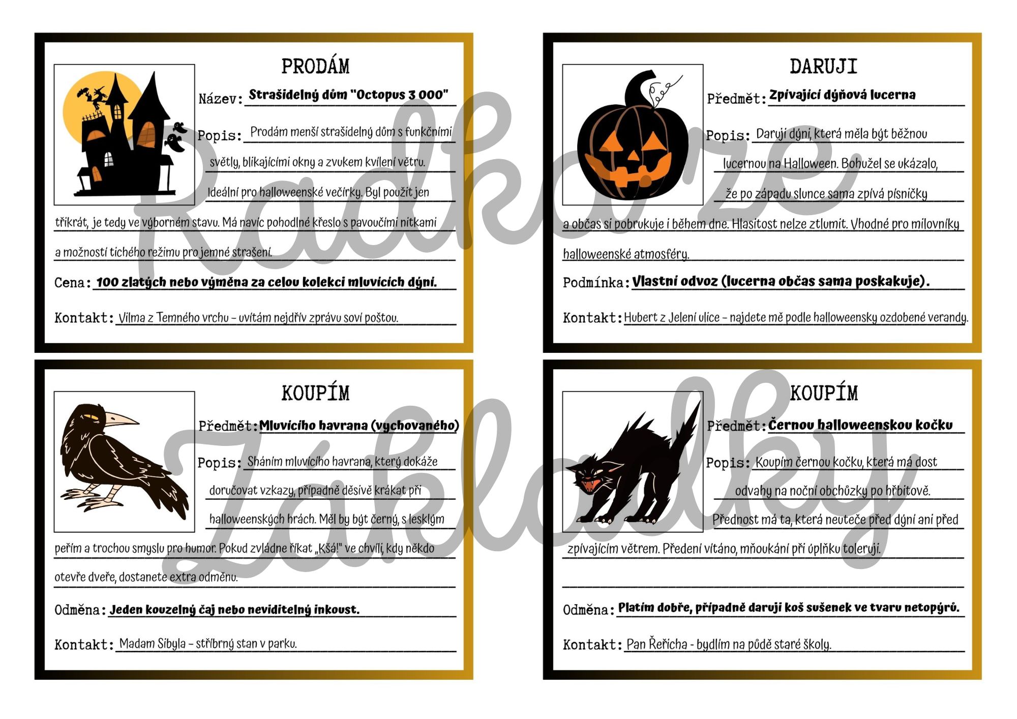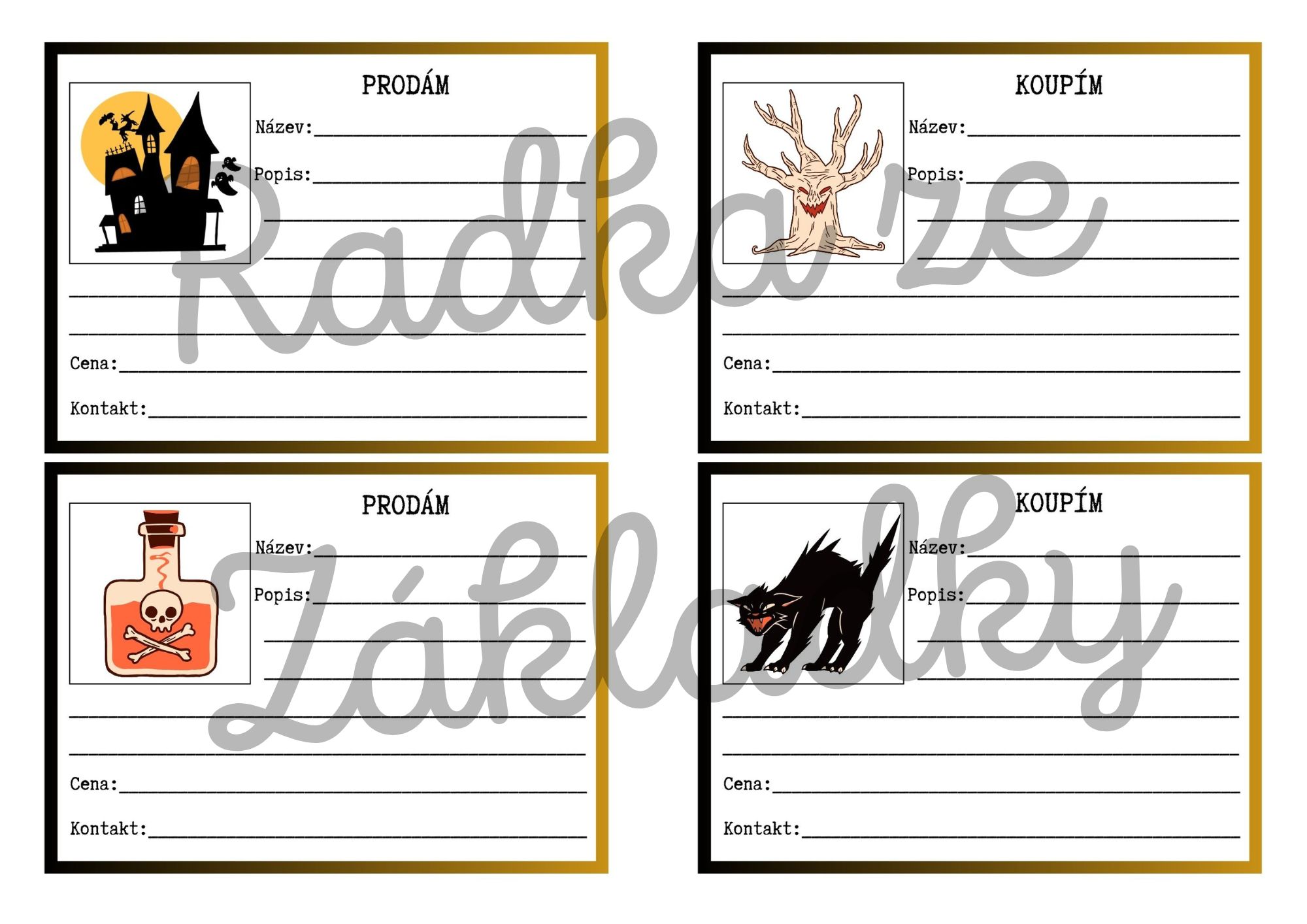- 2 prázdných kartiček pro tvorbu vlastních inzerátů podle fantazie,