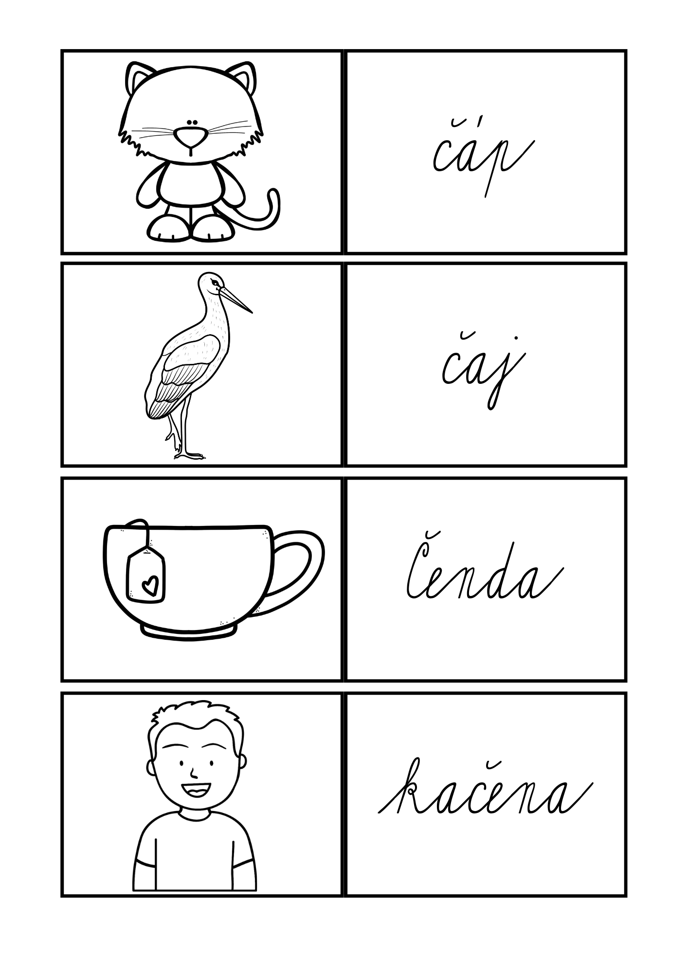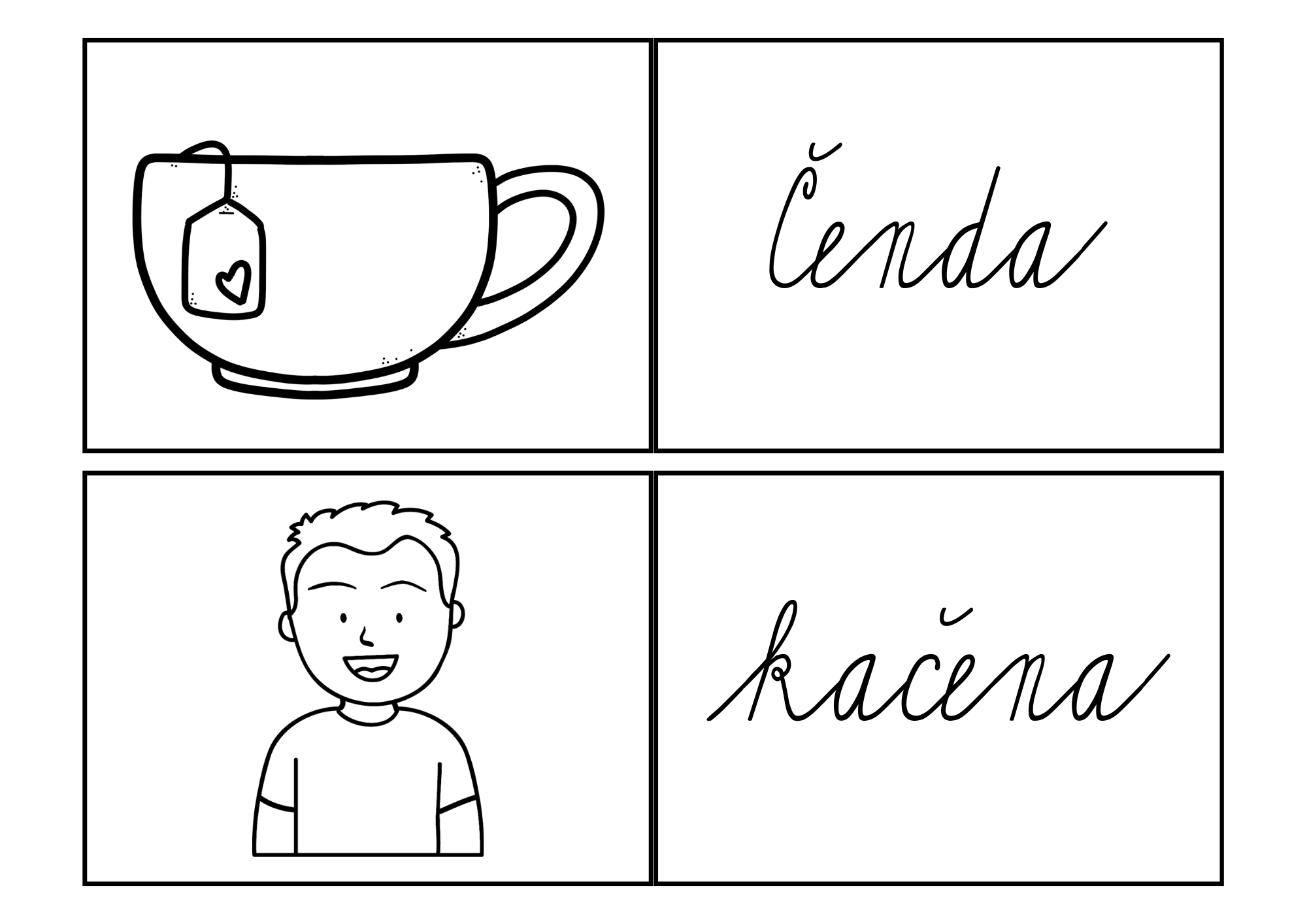 - menší i větší černobílou verzi v psacím písmu – 16 kartiček