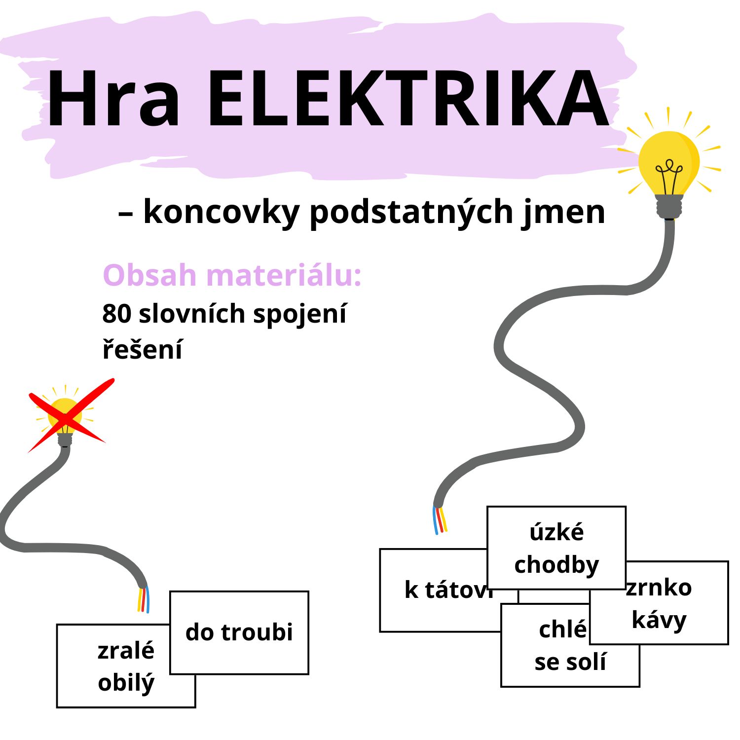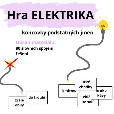 Kartičky na procvičování KONCOVEK PODSTATNÝCH JMEN pomocí hry elektrika.