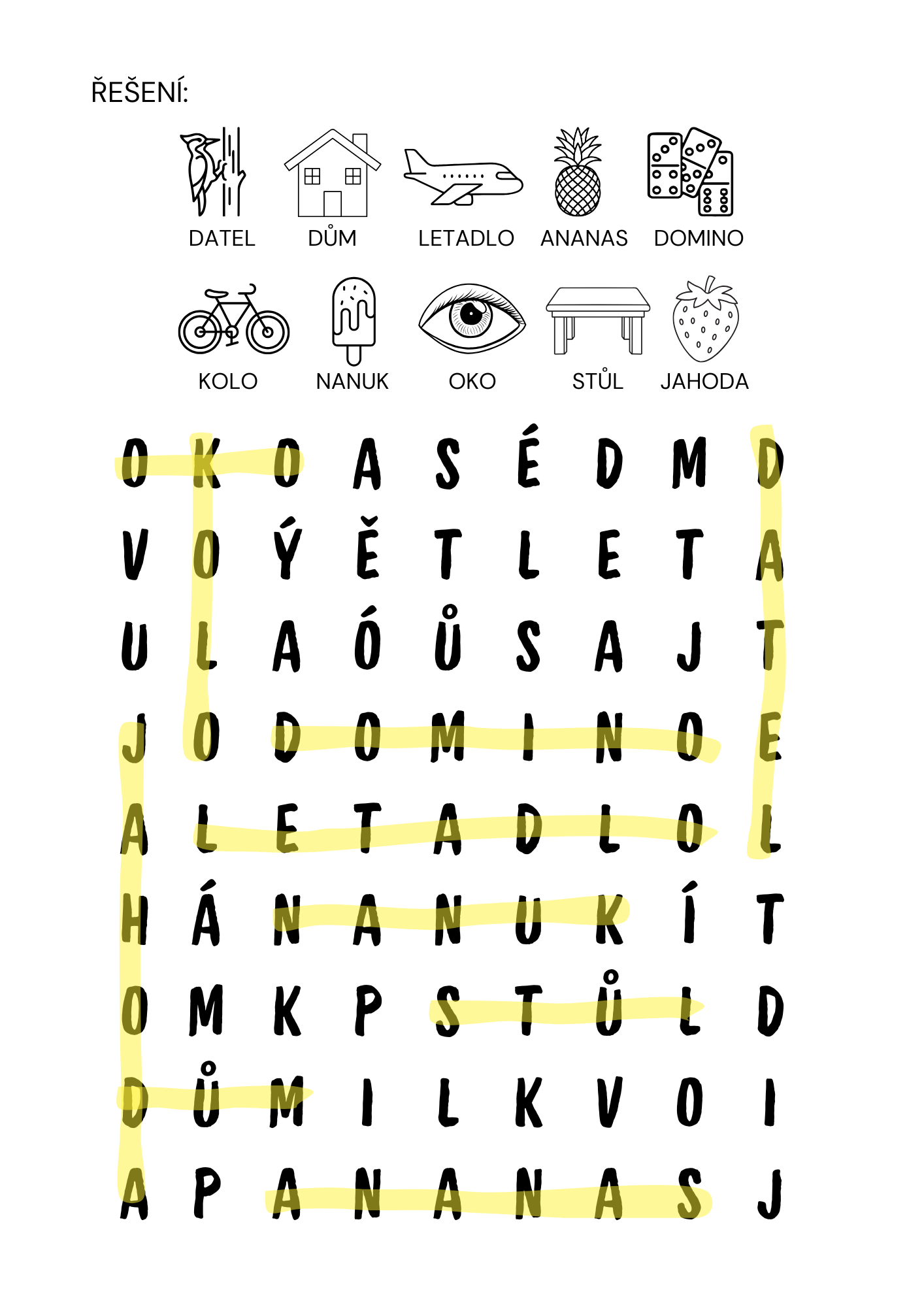- 2x "Osmisměrky" (1x jednosměrka - slova vodorovně a 1x dvojsměrka - slova vodorovně a svisle): Skvěle trénuje postřeh a zrakové vnímání.