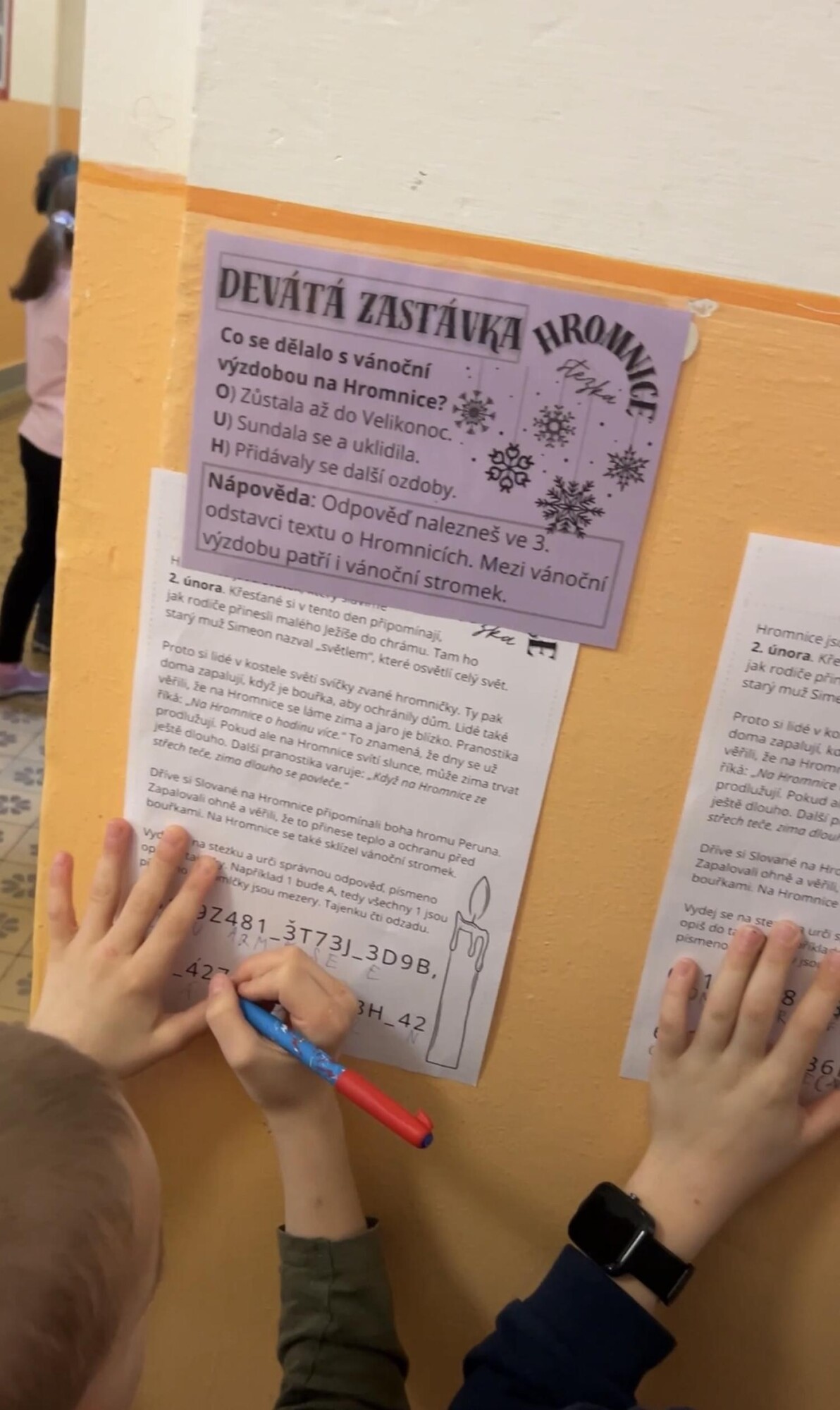 Stezku stačí POUZE vytisknout a rozvěsit po třídě. 💡 Dále už jenom relaxujte - žáci budou makat sami! 💡 Učme s lehkostí 👩🏫 Stezka obsahuje 9 zastavení s tajenkou, která žákům odhalí další pranostiku spjatou s Hromnicemi. V závěru stezky se žáci dozvědí co je to vitráž a poskládají si svou vitráž s výjevem příchodu Ježíška do chrámu.